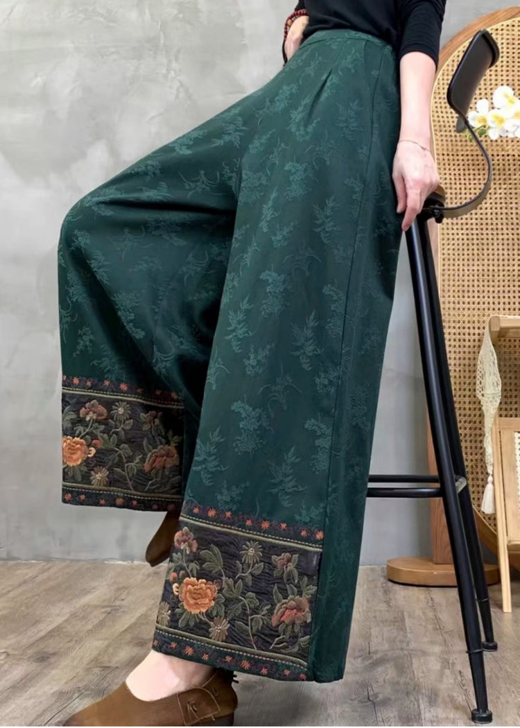 Tea Green Jacquard Cotton Straight Pants Embroidered Spring