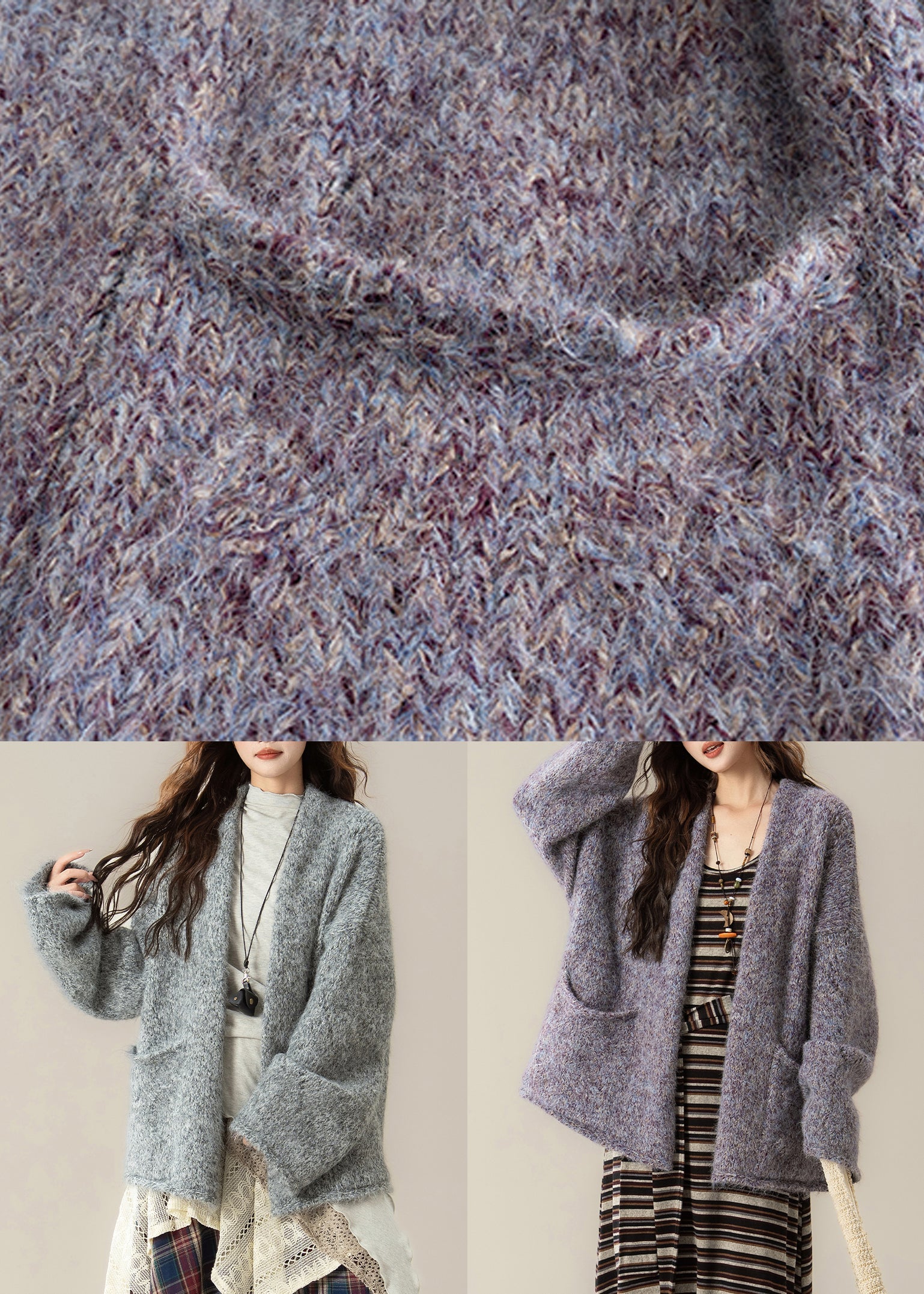Purple Pockets Cozy Knit Loose Cardigans V Neck