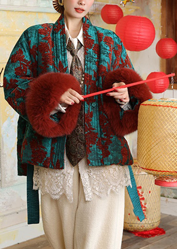 Chinese Style Wear On Both Sides Jacquard Fur Patchwork Coat Winter
