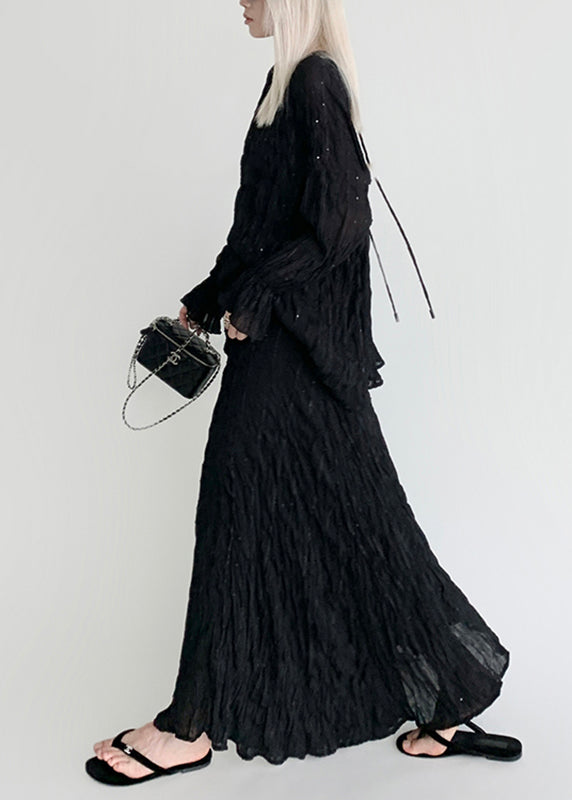 Sexy Black Wrinkled Perspective Tulle Long Dress Fall