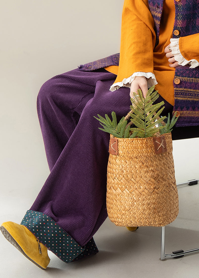 Modern Brown Ruffled Corduroy Wide Leg Pants Spring