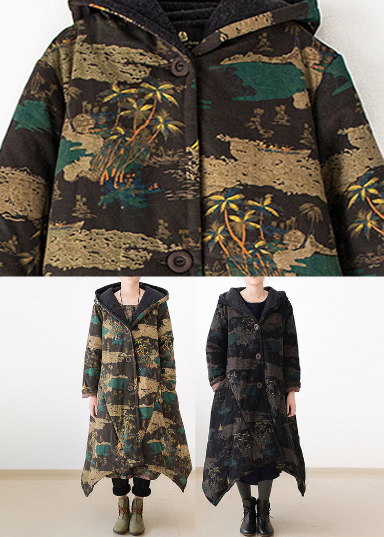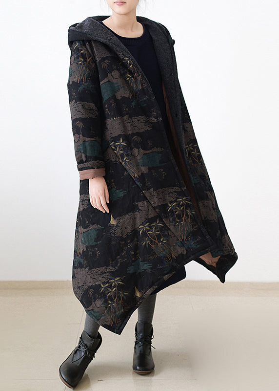 Black Button Warm Thick Hooded Long Parka Coats Winter