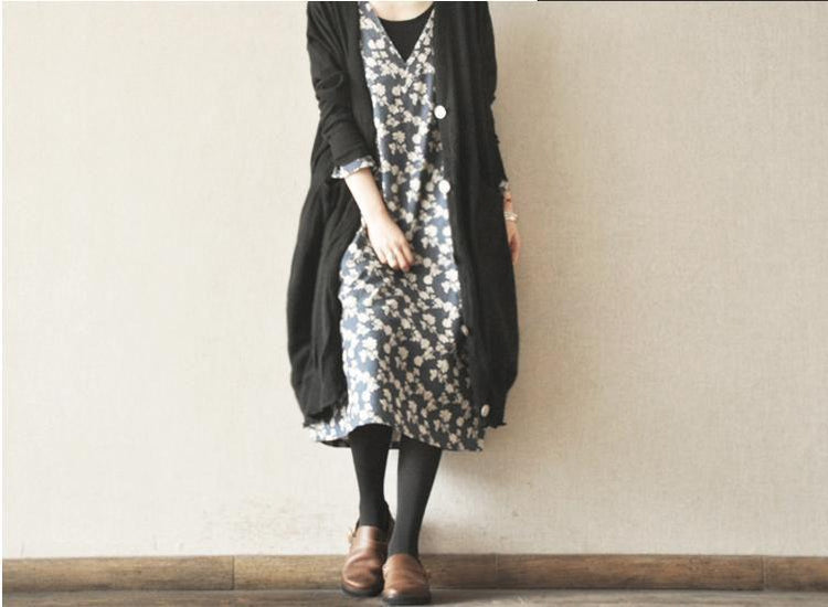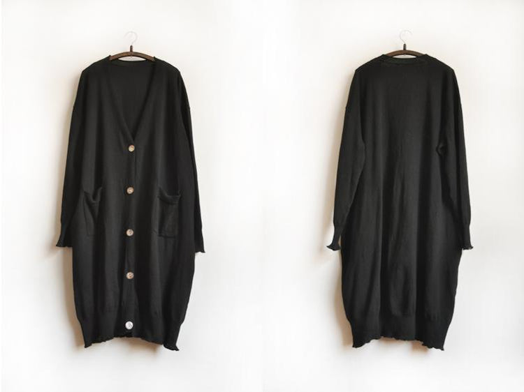 Black Casual Loose Long Sweater Knitwear Coat Women Tops