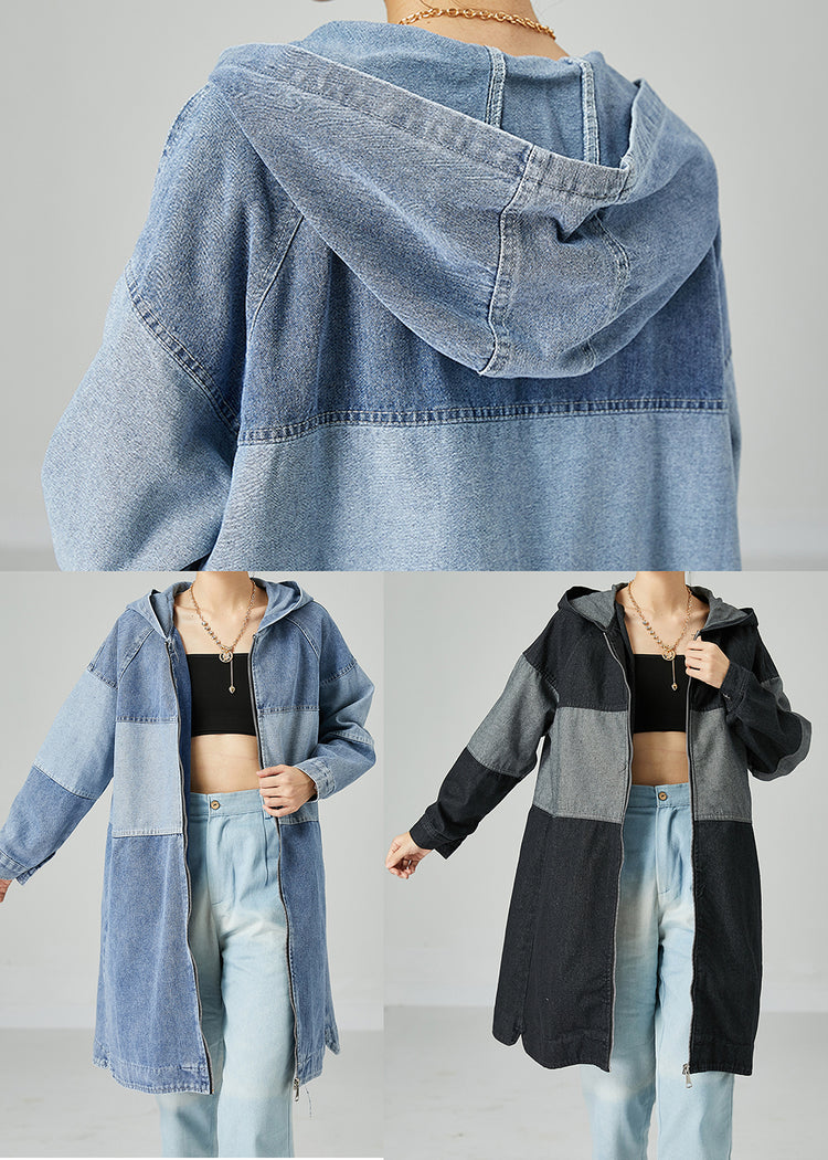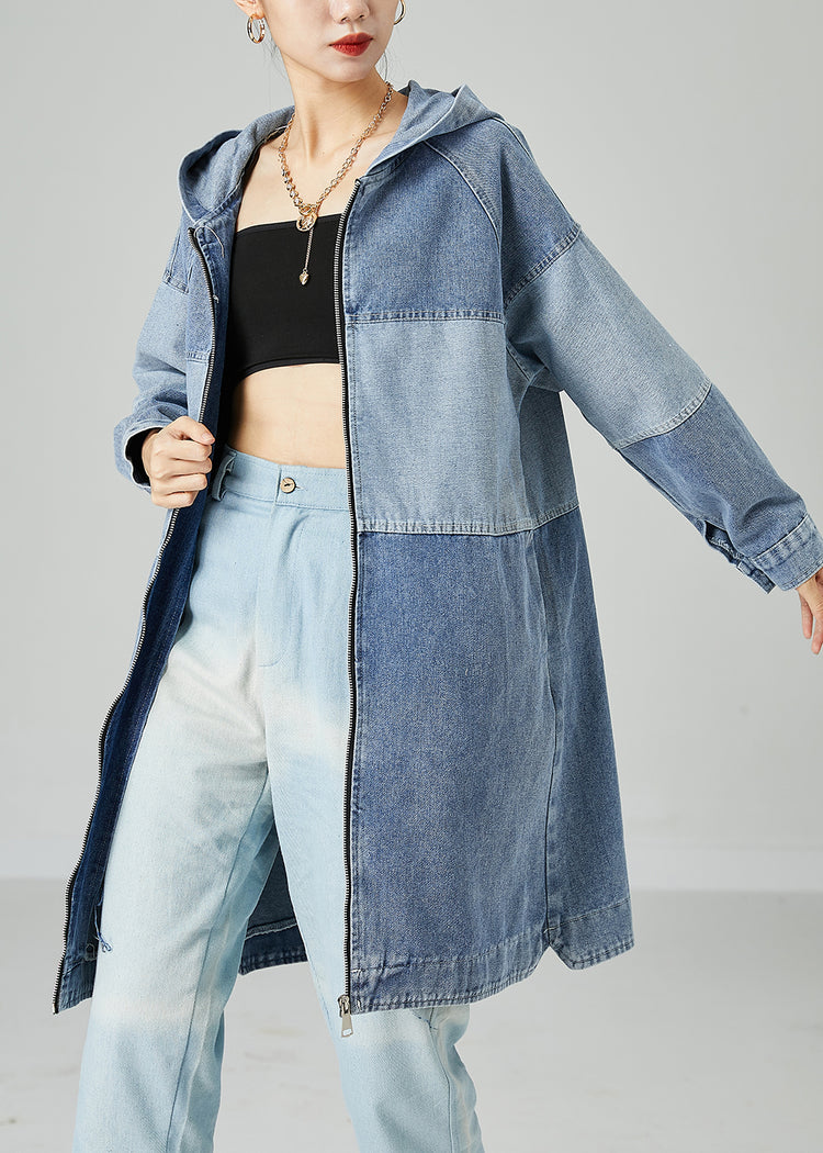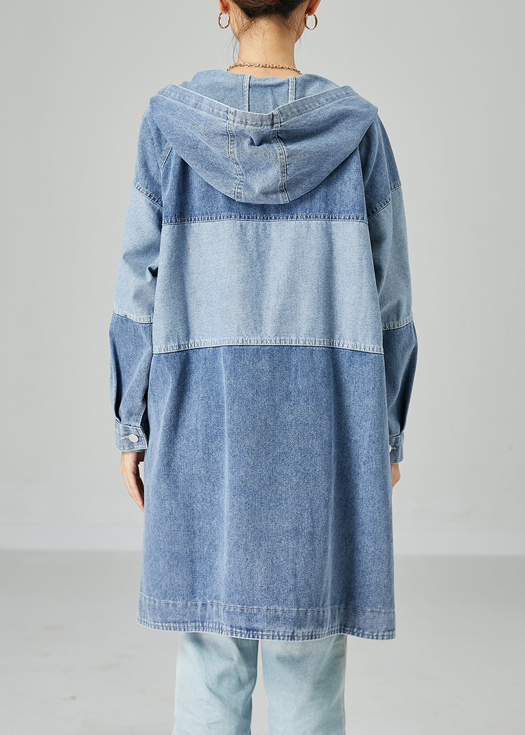 Bohemian Light Blue Oversized Patchwork Cotton Denim Coat Spring