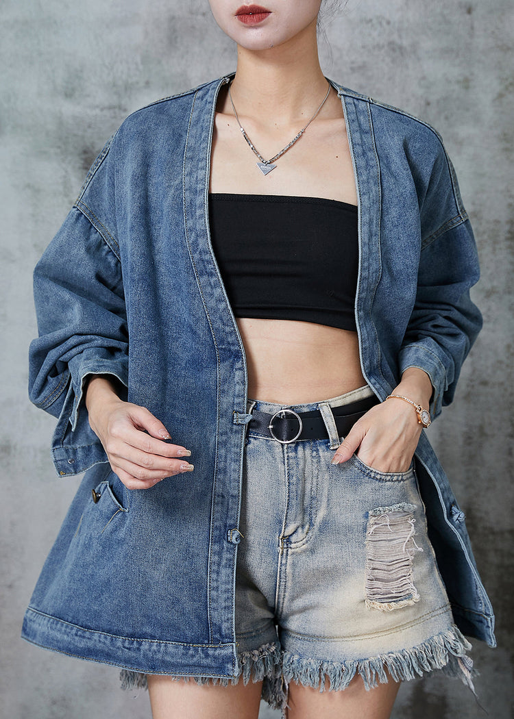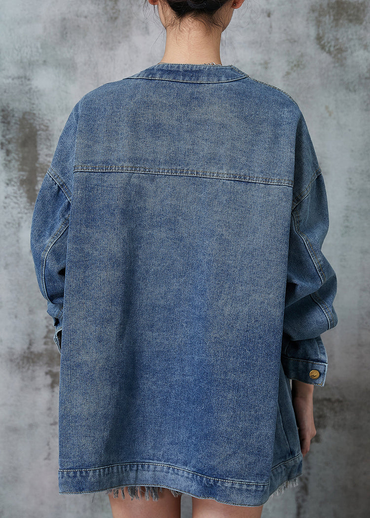 Bohemian Navy Oversized Chinese Button Denim Coats Spring