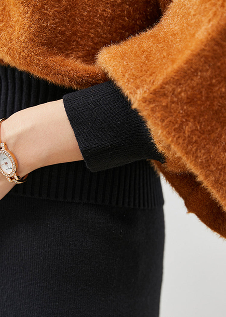 Boutique Khaki Thick Knit Coats And Straight Pants Two Pieces Set Spring