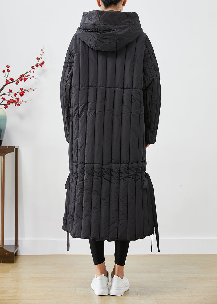 Casual Black Oversized Striped Fine Cotton Filled Puffers Jackets Winter