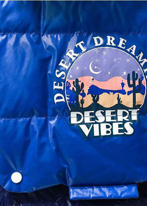 Casual Blue Hooded Patchwork Print Duck Down Puffer Jacket Winter