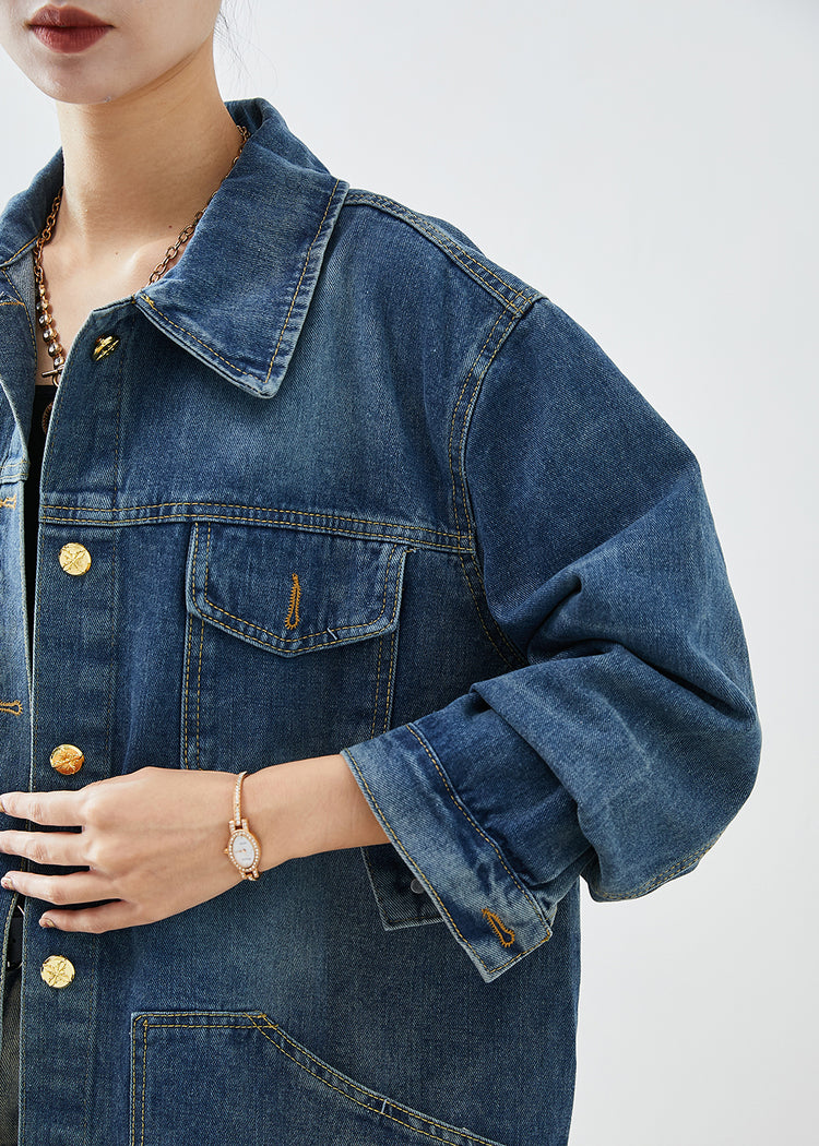 Casual Blue Oversized Patchwork Denim Coats Fall