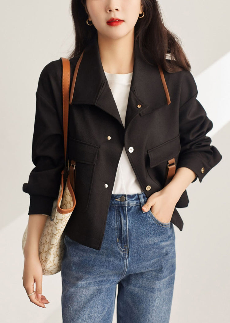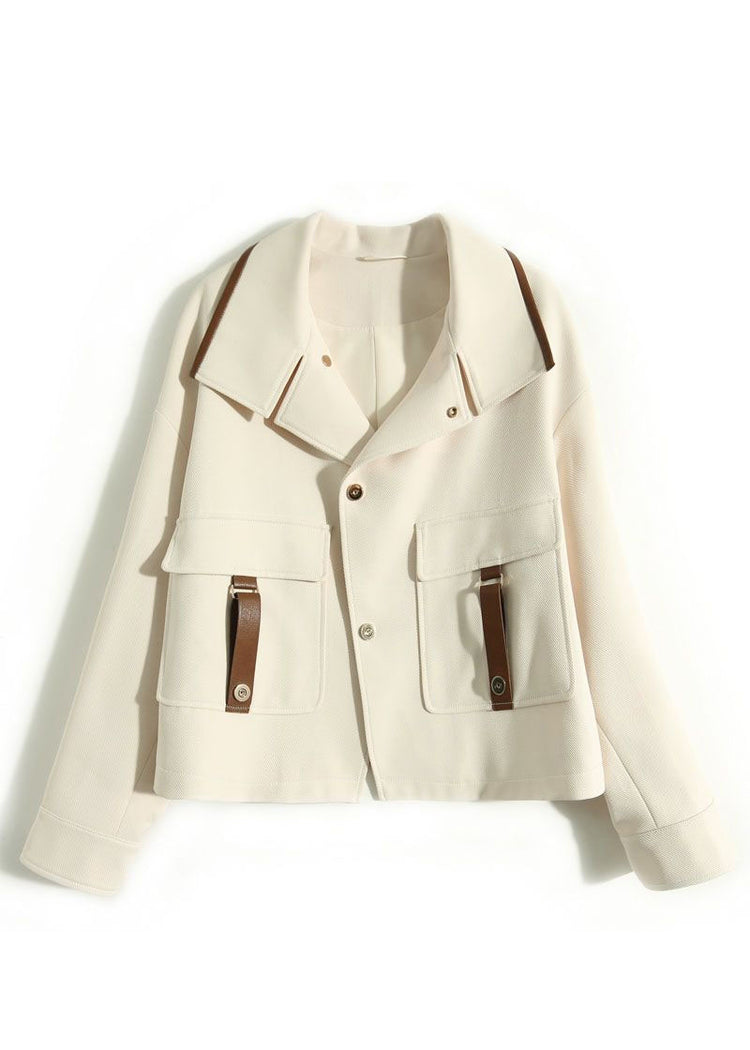 Casual White Peter Pan Collar Patchwork Pockets Cotton Coats Fall