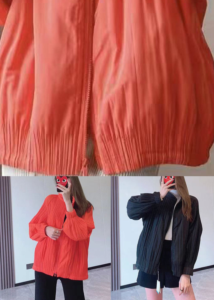 Chic Orange Zip Up Fine Cotton Filled Thin Jackets Spring