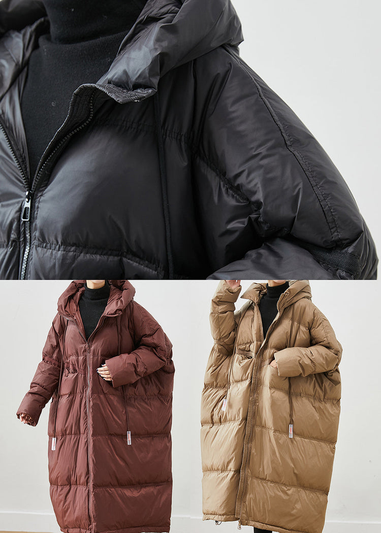 Chocolate Oversized Duck Down Jackets Hooded Drawstring Winter