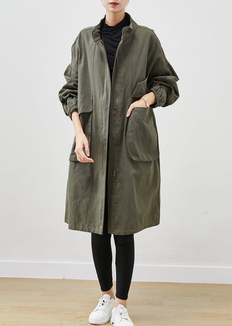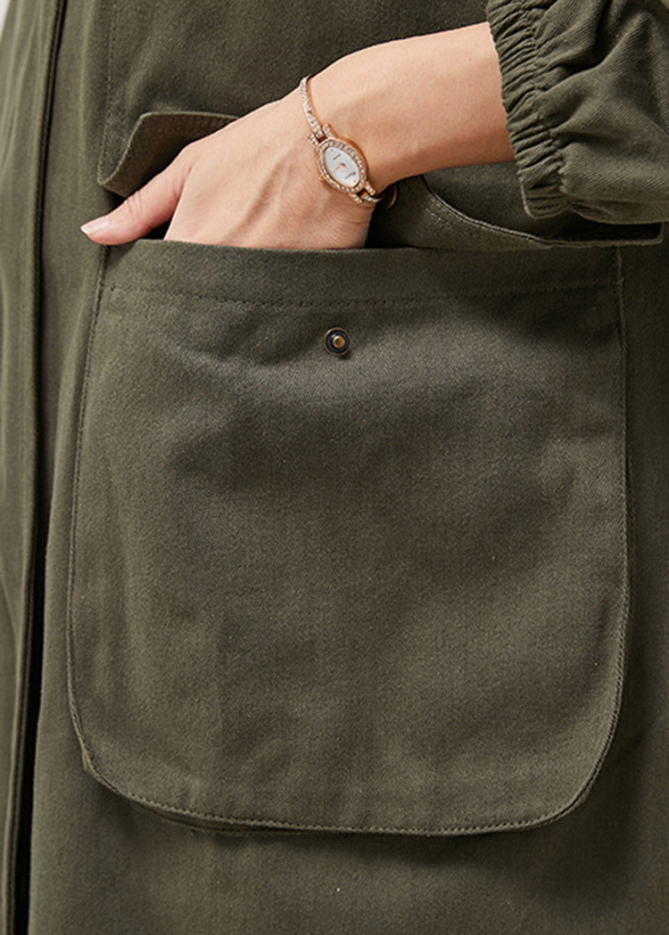 Classy Army Green Oversized Pockets Cotton Coat Outwear Spring