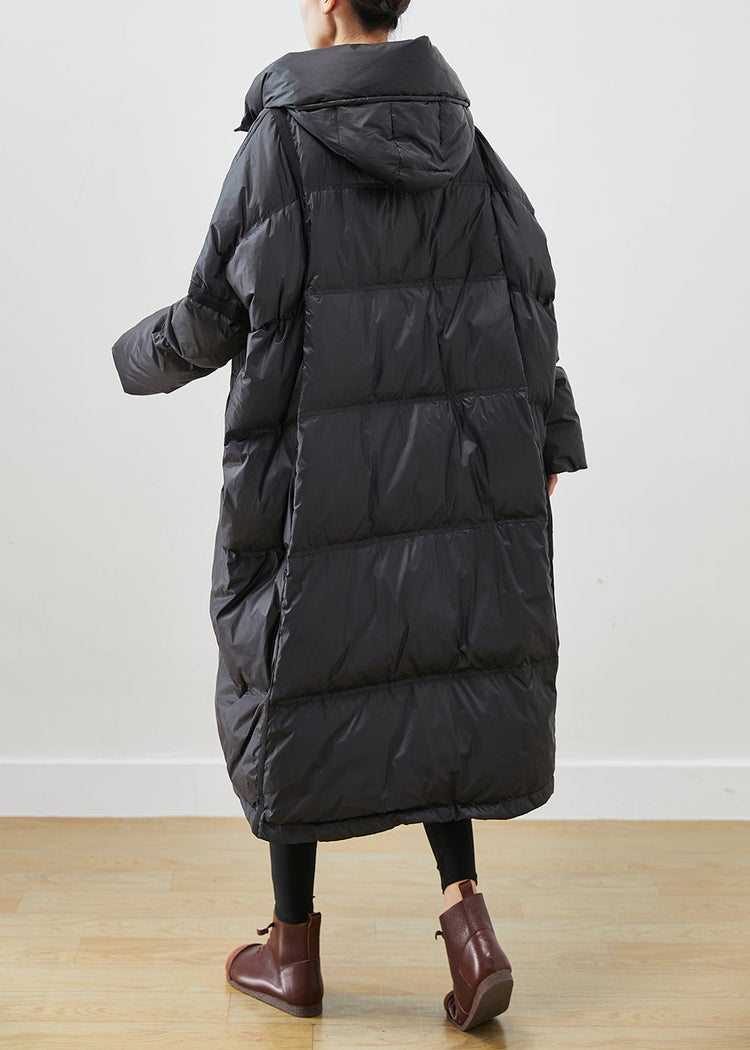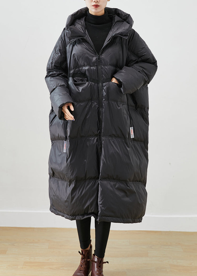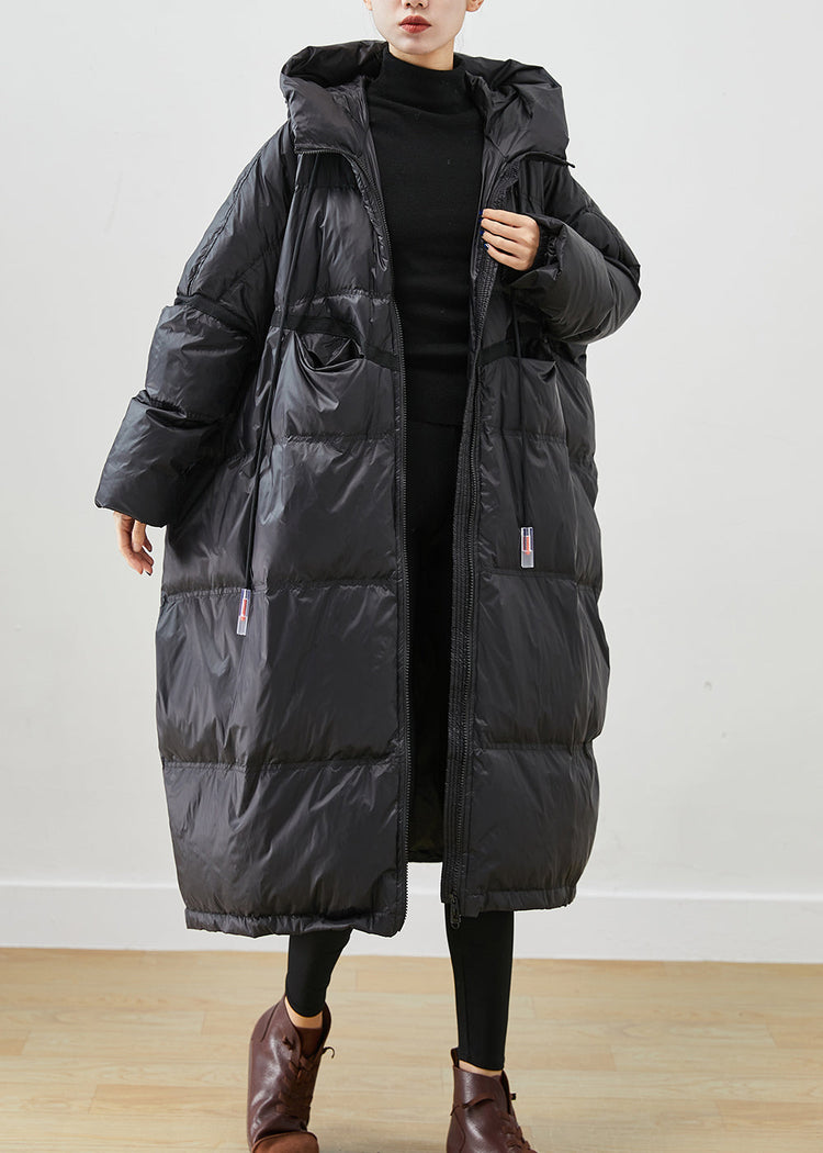 French Black Oversized Drawstring Duck Down Jacket In Winter