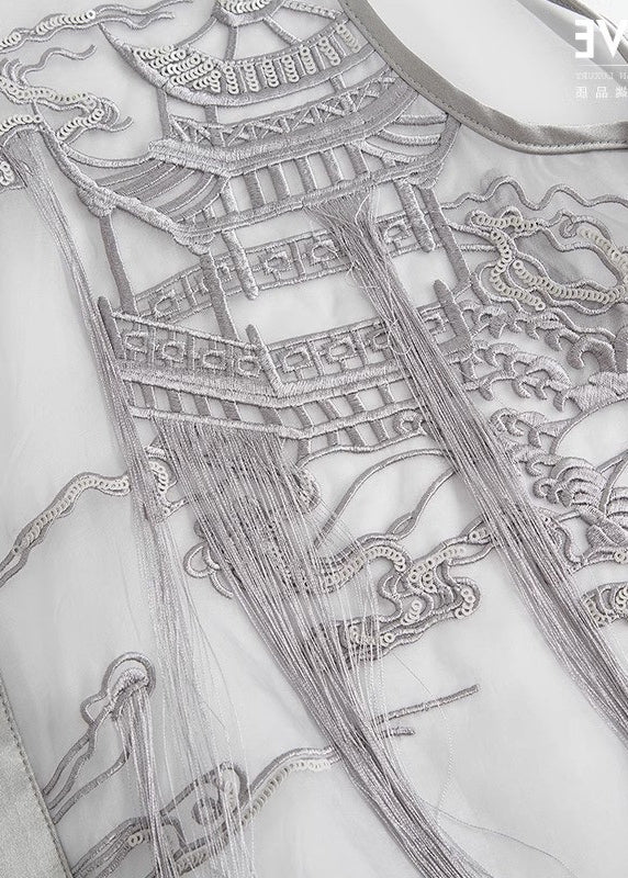 Modern Black O-Neck Embroidered Silk Waistcoat Summer