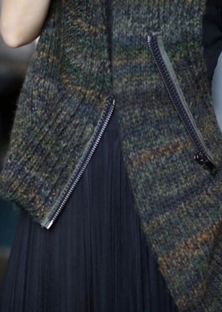 New Dark Gray Asymmetrical Zippered Cotton Knit Waistcoat Sleeveless