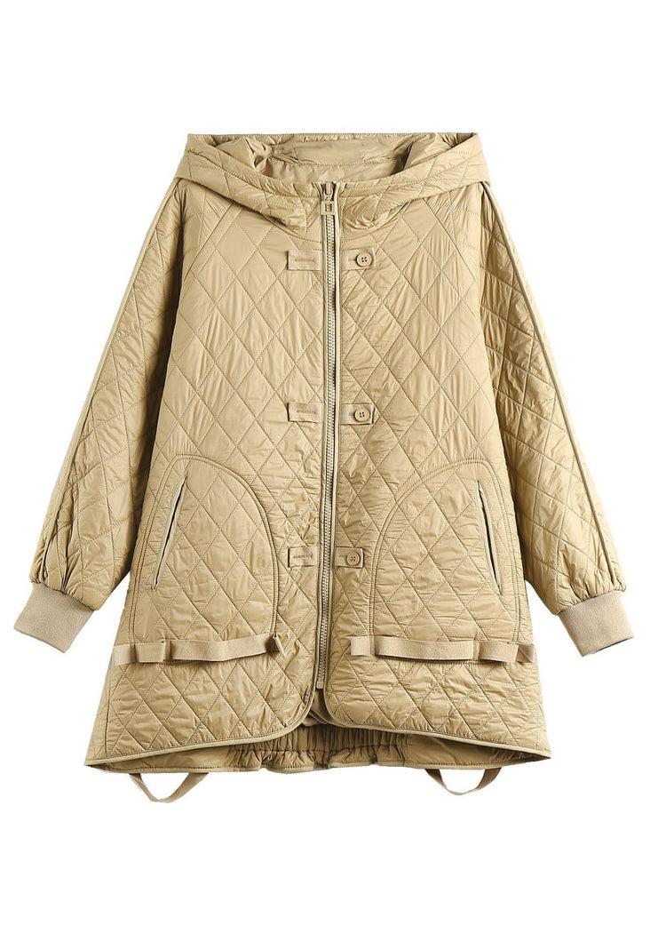Organic Khaki Plaid Zippered Drawstring Fine Cotton Filled Hoodie Down Jackets Winter