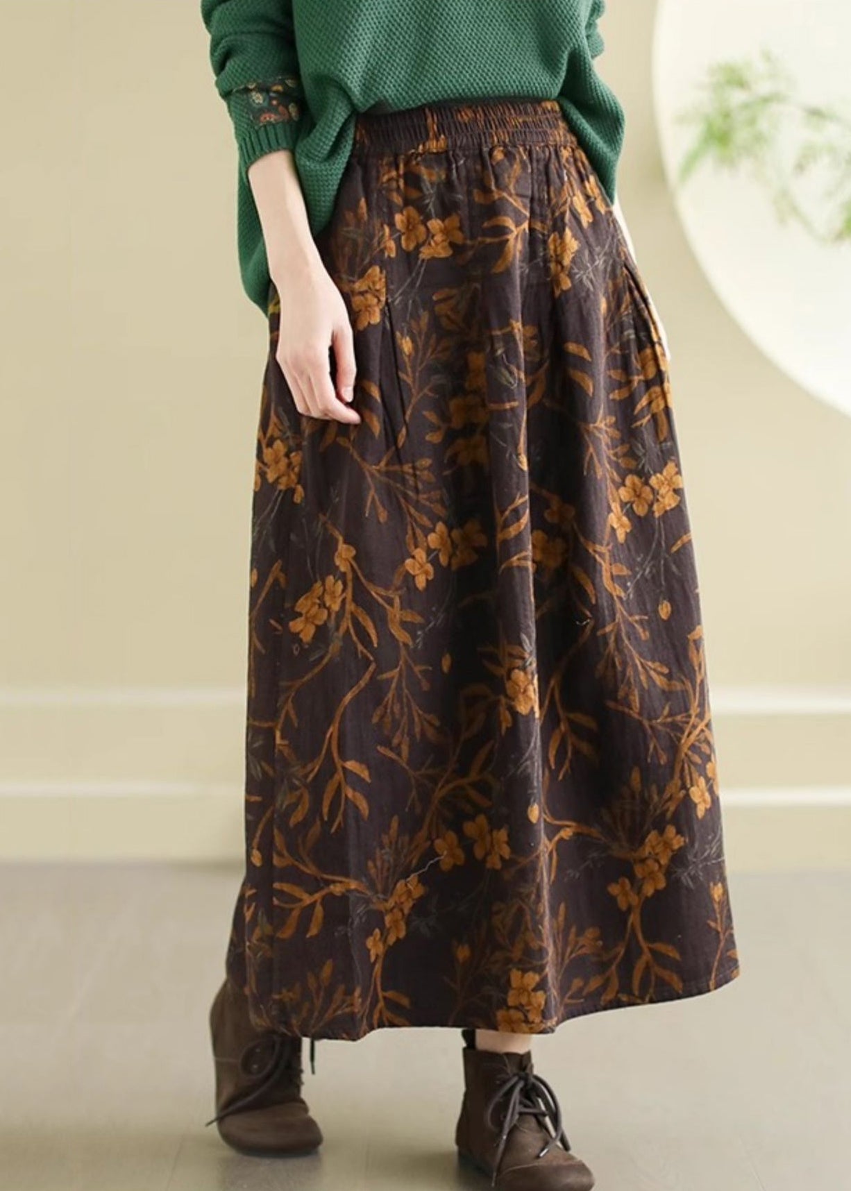 Fitted Brown Oversized Print Cotton Skirt Spring