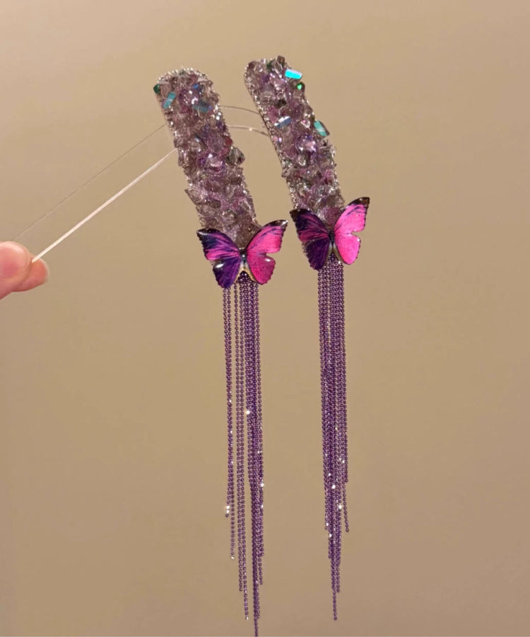 Stylish Purple Alloy Zircon Butterfly Tassel Single Piece Hairpin