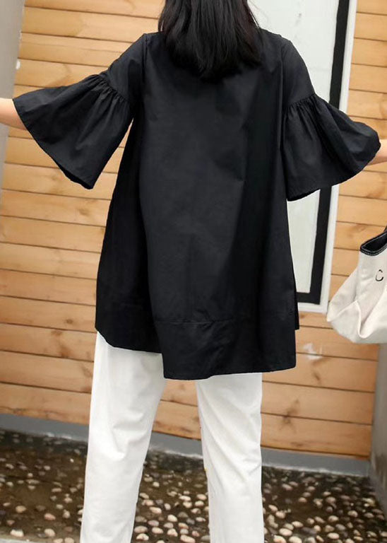 New Black Cartoon Sequins Patchwork Cotton Shirts Top Summer