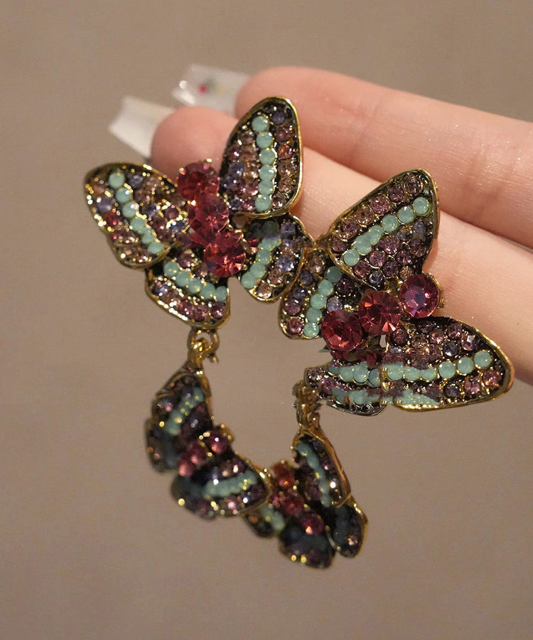 Oversize Rainbow Copper Zircon Butterfly Stud Earrings