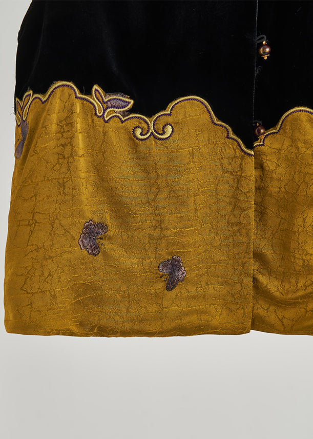 Style Black Embroidered Patchwork Silk Velour Vests Sleeveless