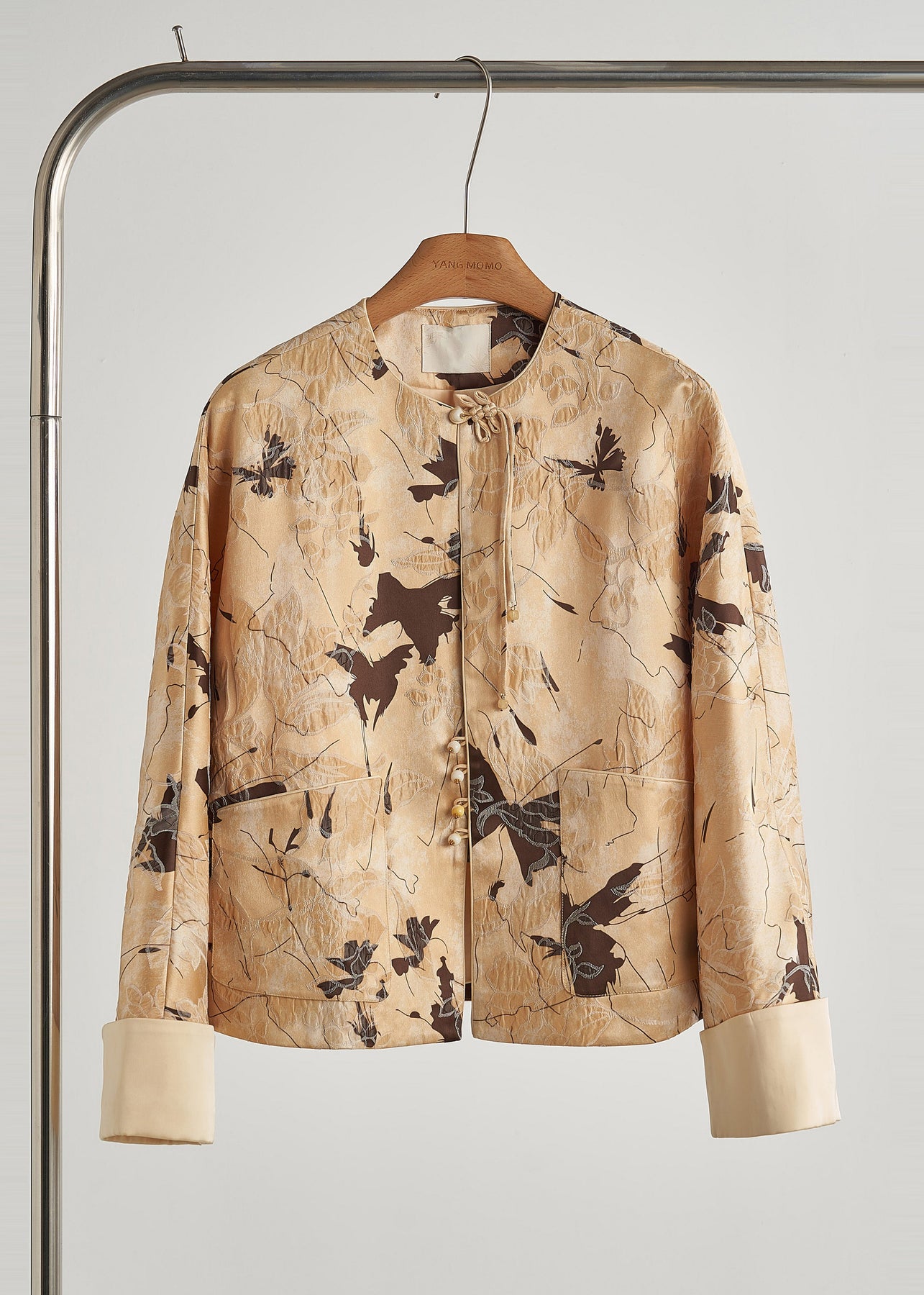 Style Yellow Tasseled Jacquard Silk Coats Fall