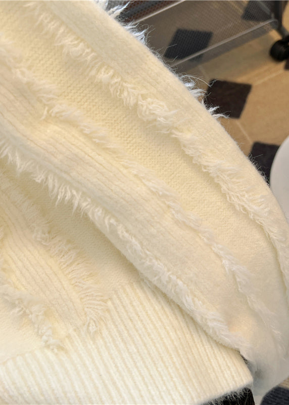 French Rose O Neck Tassel Patchwork Knit Sweaters Spring