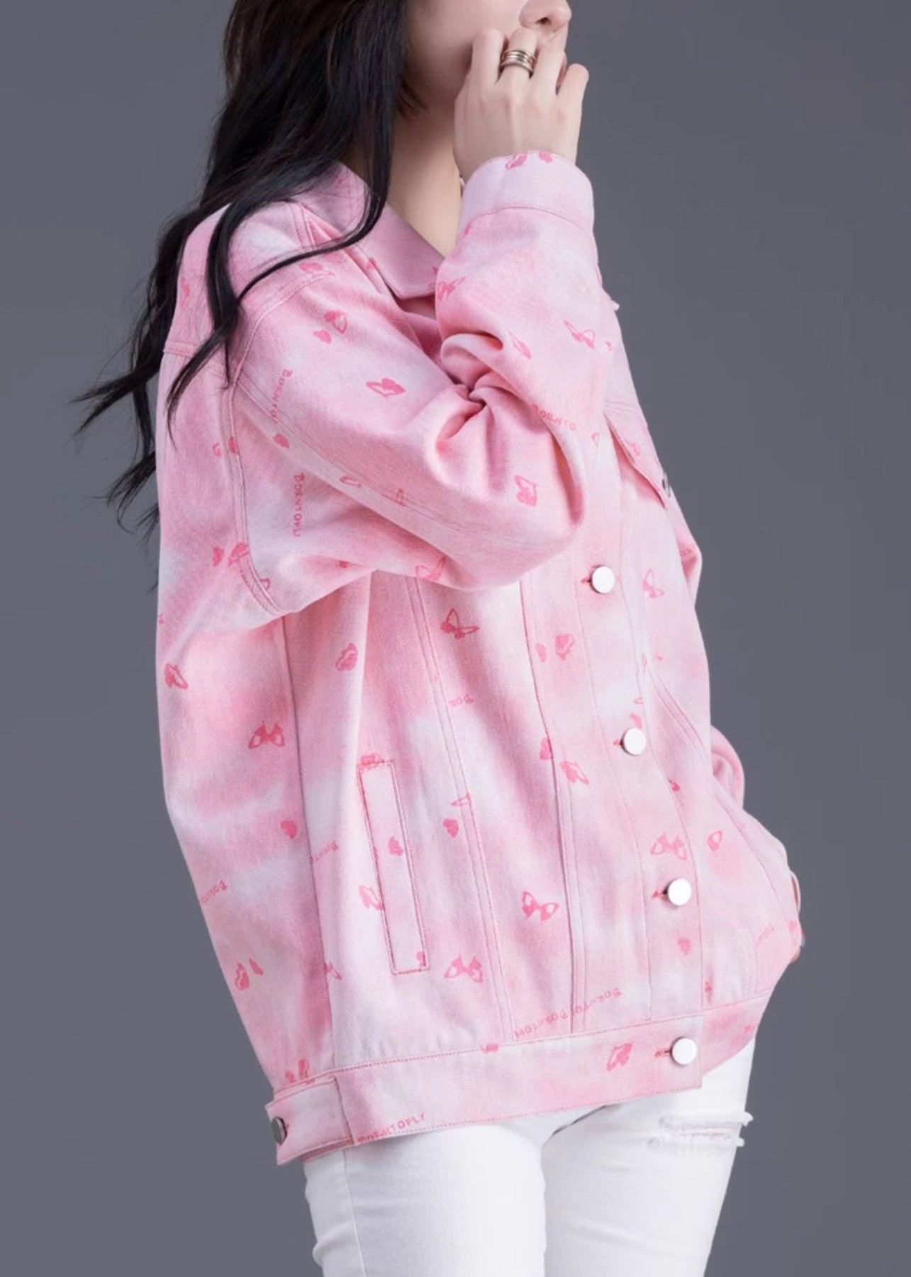 Boutique Pink Oversized Floral Denim Jackets Spring