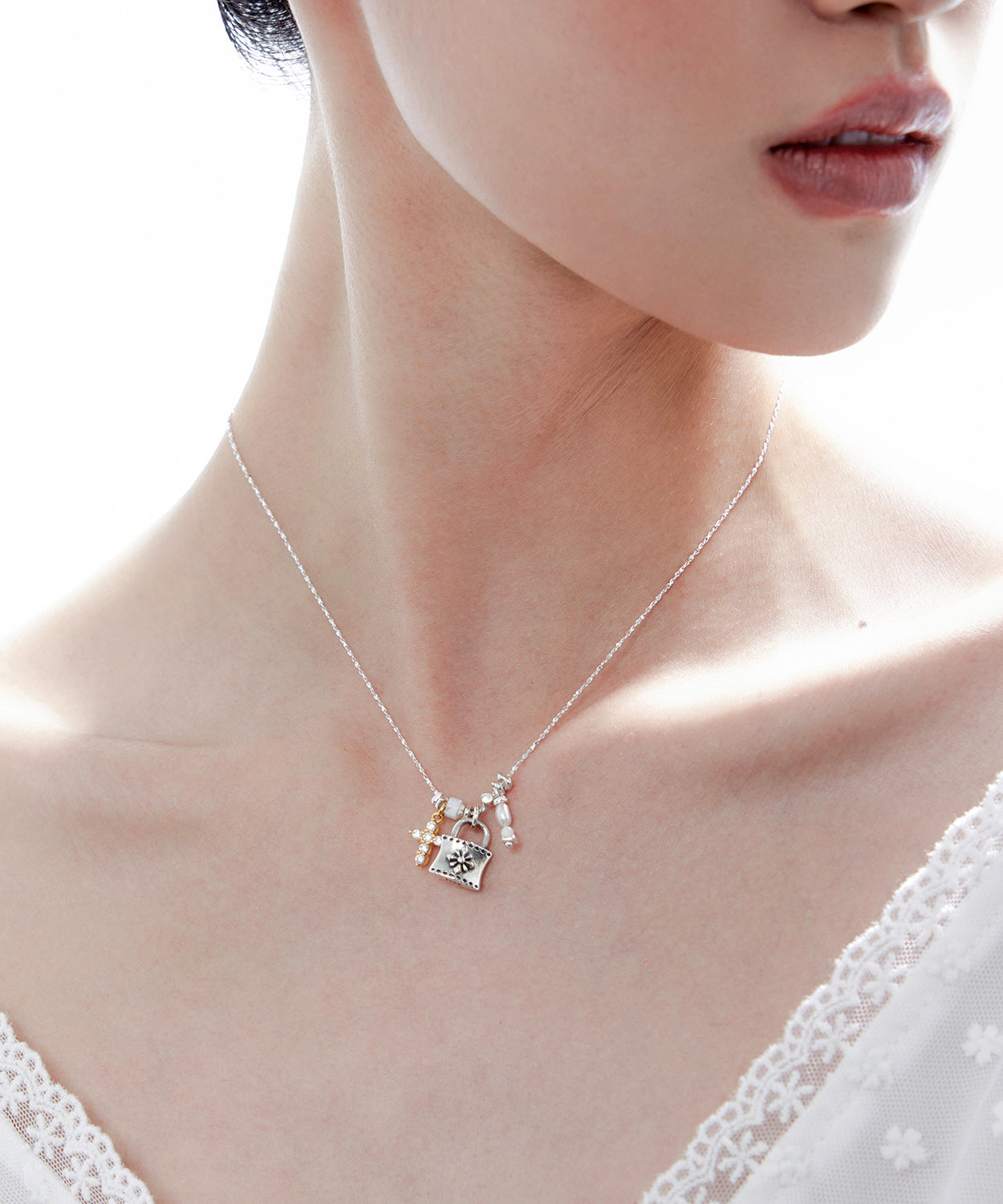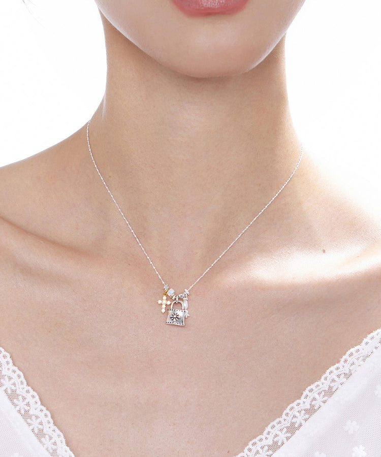 Fine Silk Cross Small Lock Pendant Adjustable Silver Necklace