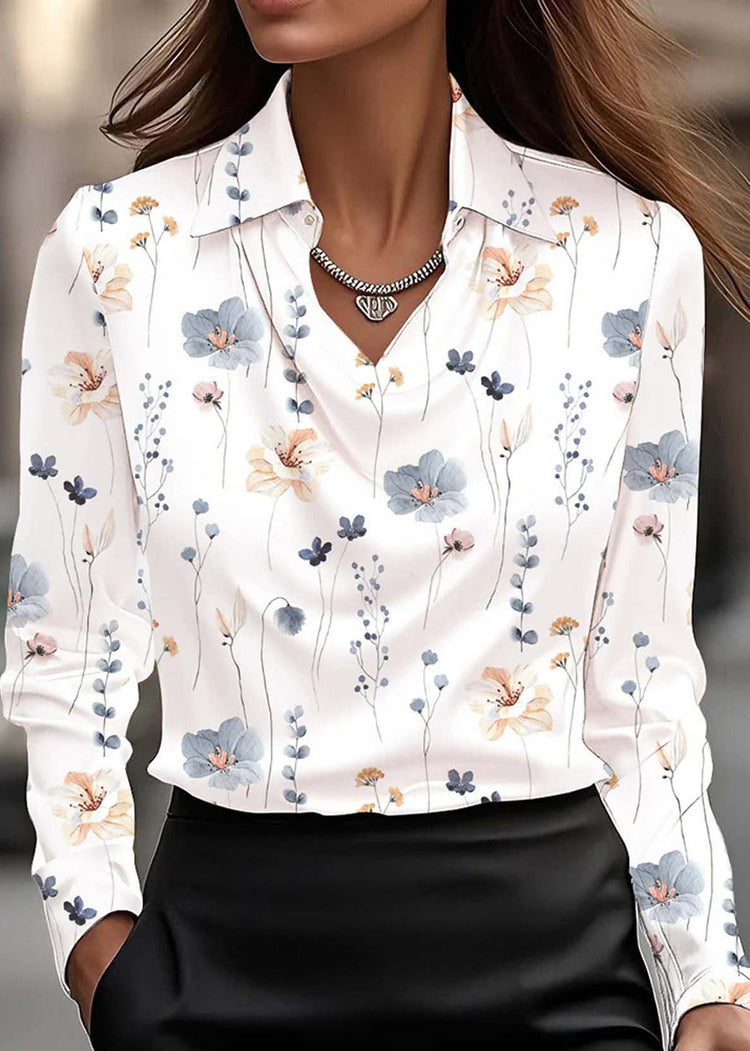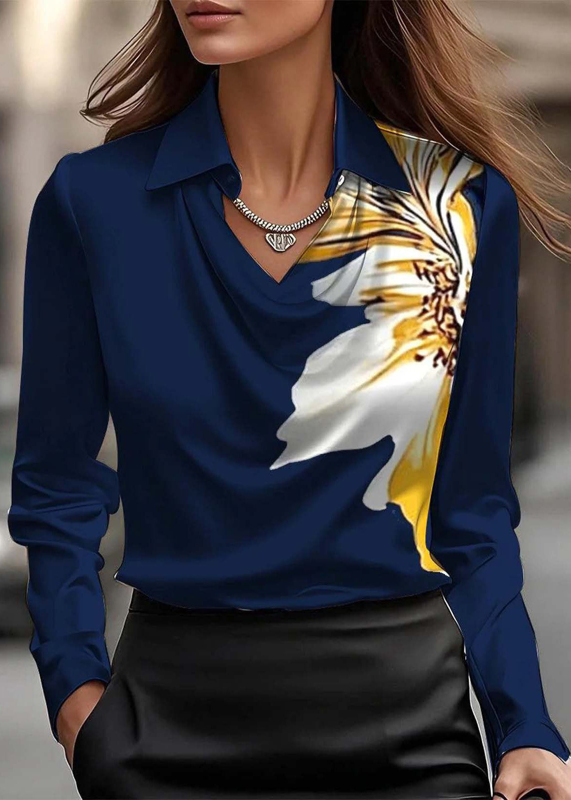 Beautiful Green Peter Pan Collar Print Silk Shirts Top Spring