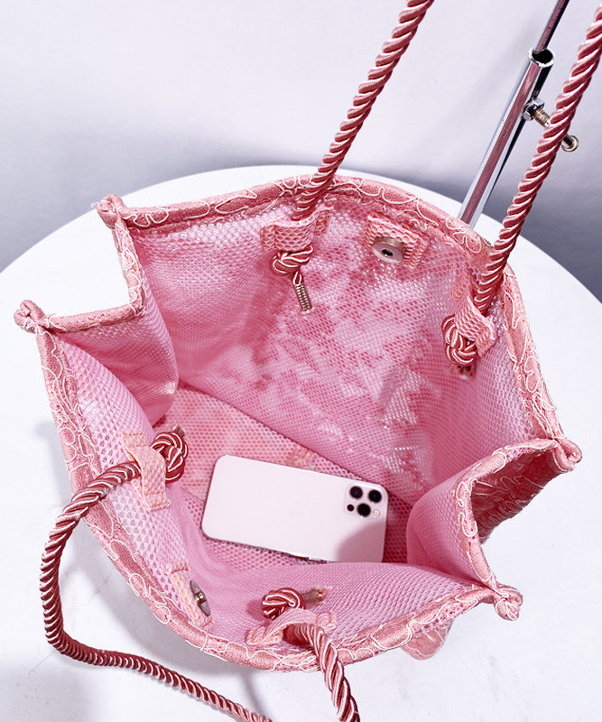 Classy Pink Embroidered Large Capacity Tulle Women Handbags