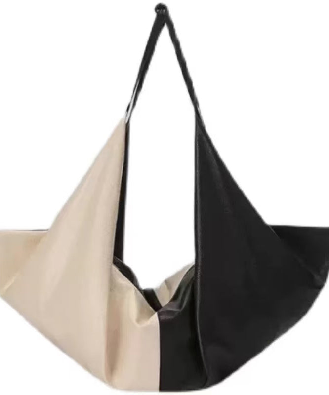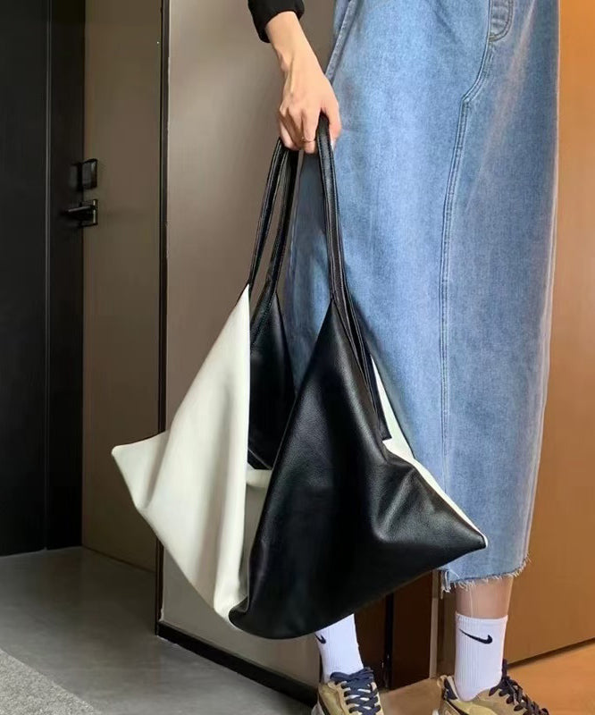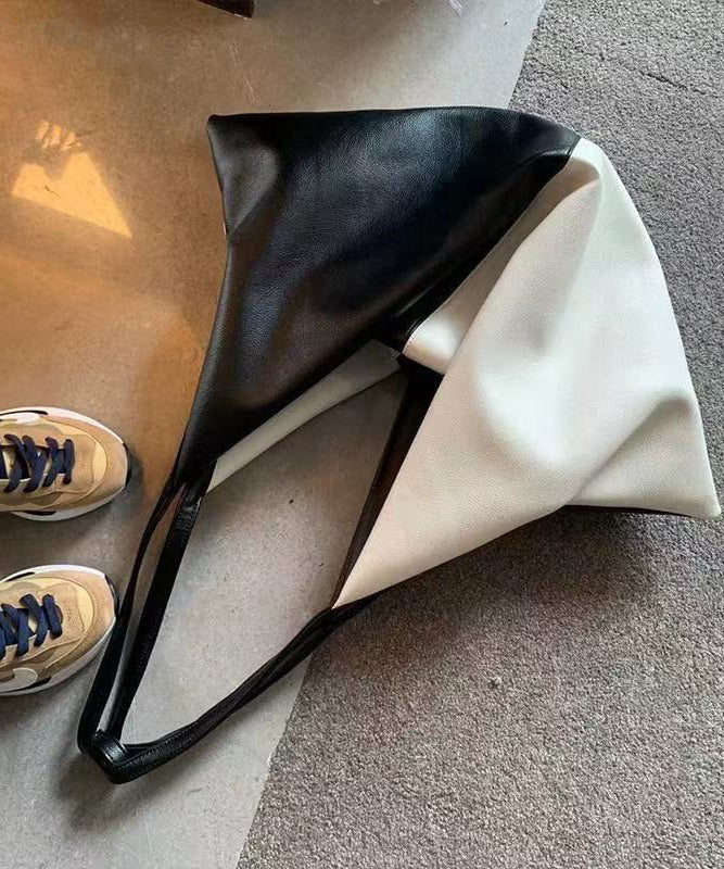 DIY Black White Patchwork Asymmetrical Design Faux Leather Shoulder Handbag