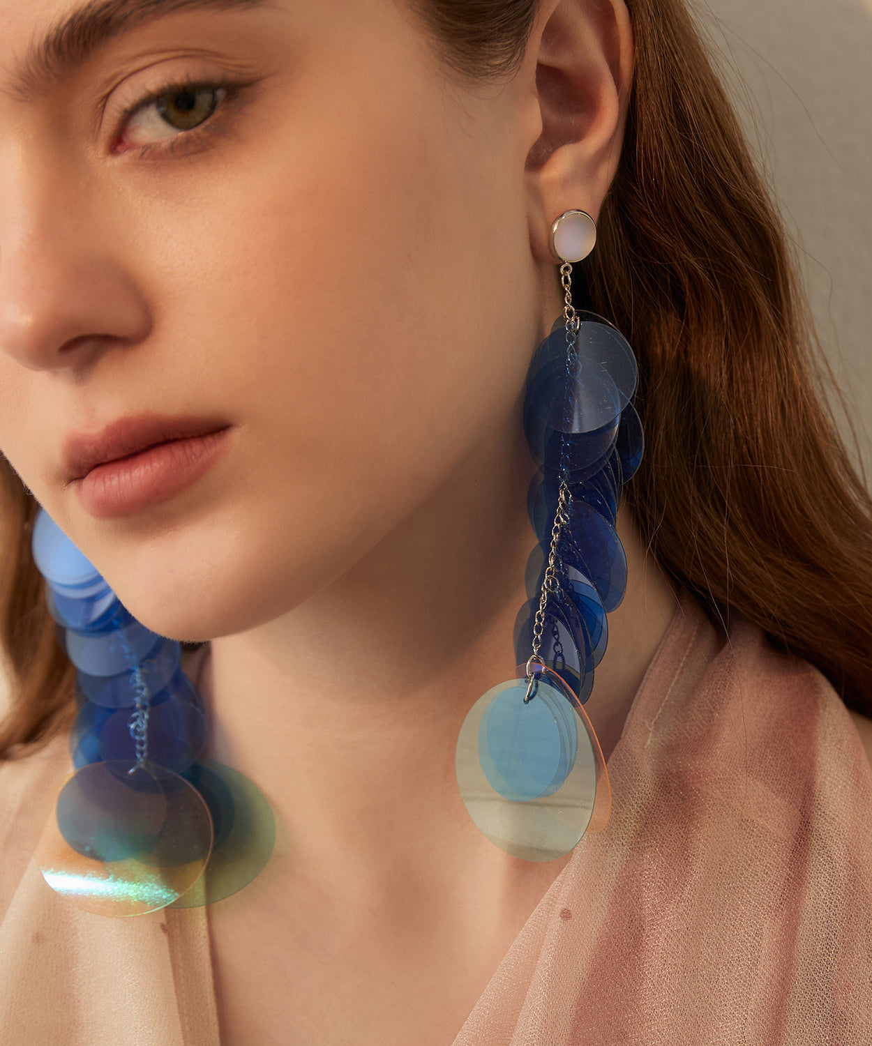 Blue Gradient Color Sequins Original Design Alloy Long Stud Earrings