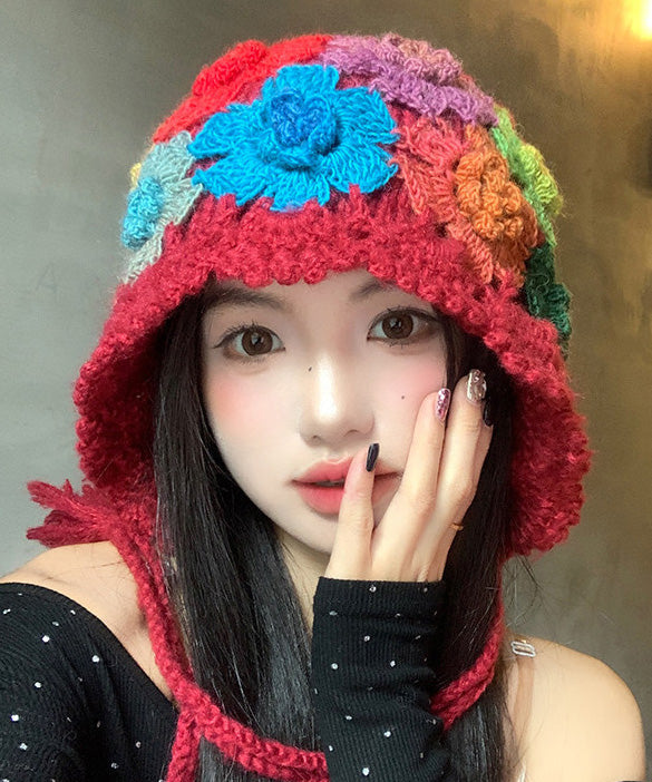 Ethnic Style Red Flower Hollow Knitted Boonie Hat