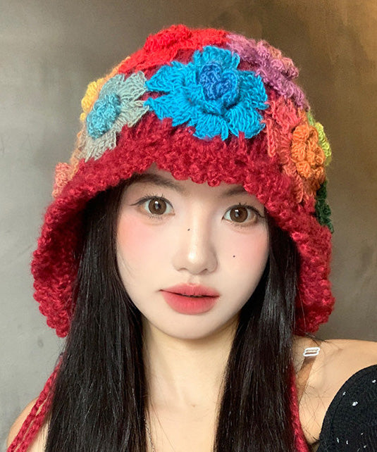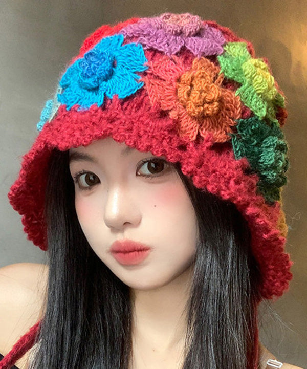 Bohemian Style Red Hollow Floral Knitted Boonie Hat