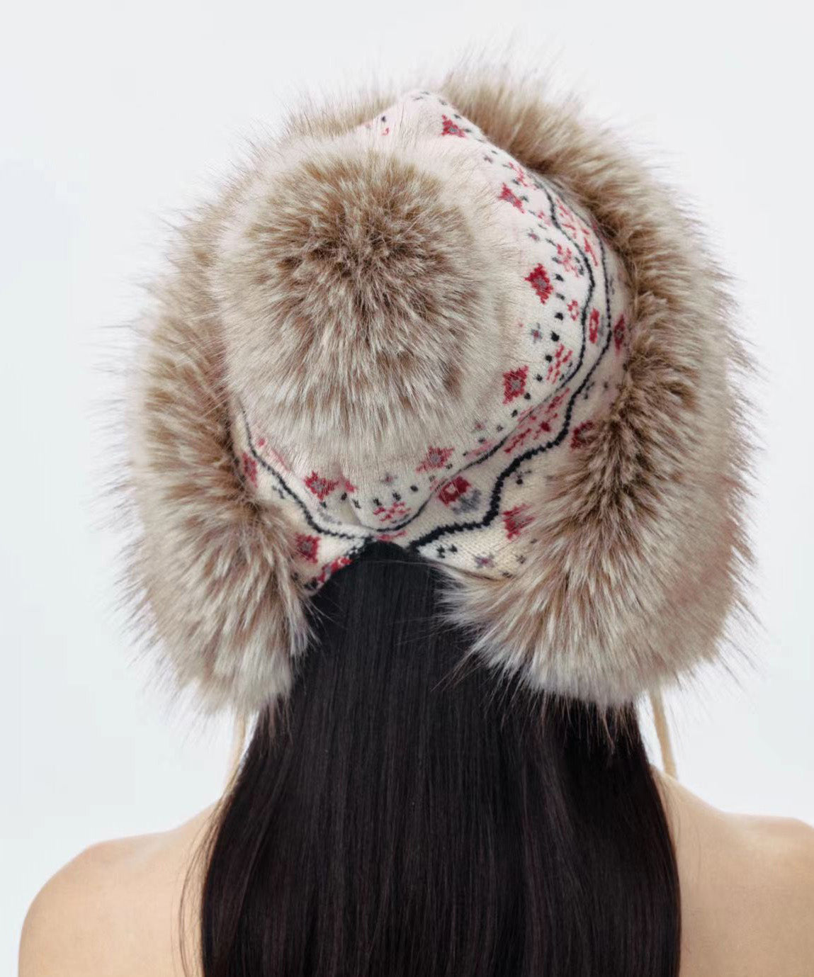 Fashion Jacquard Knitted Thick Warm Fleece Fur Boonie Hat