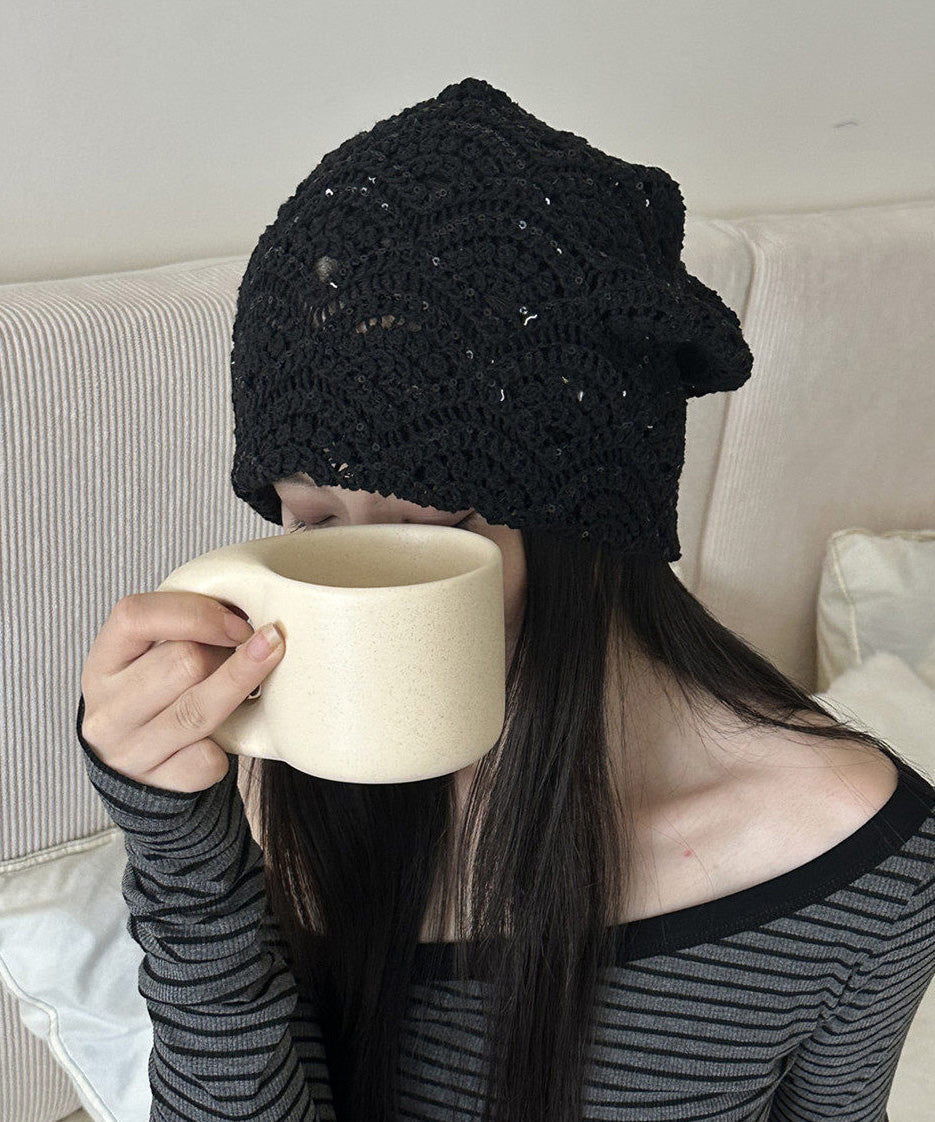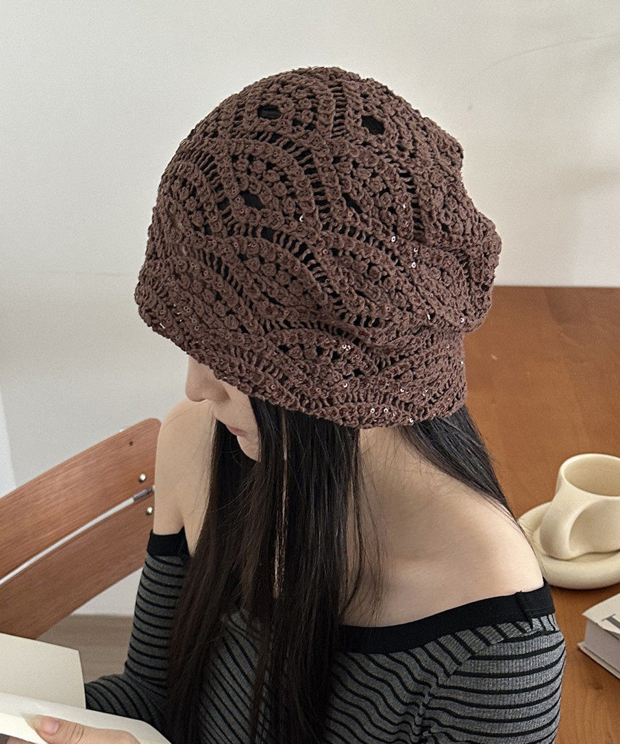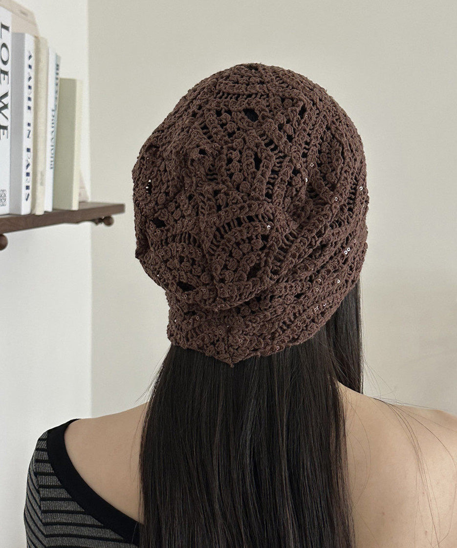 Handmade Coffee Hook Flower Sequin Thin Breathable Boonie Hat