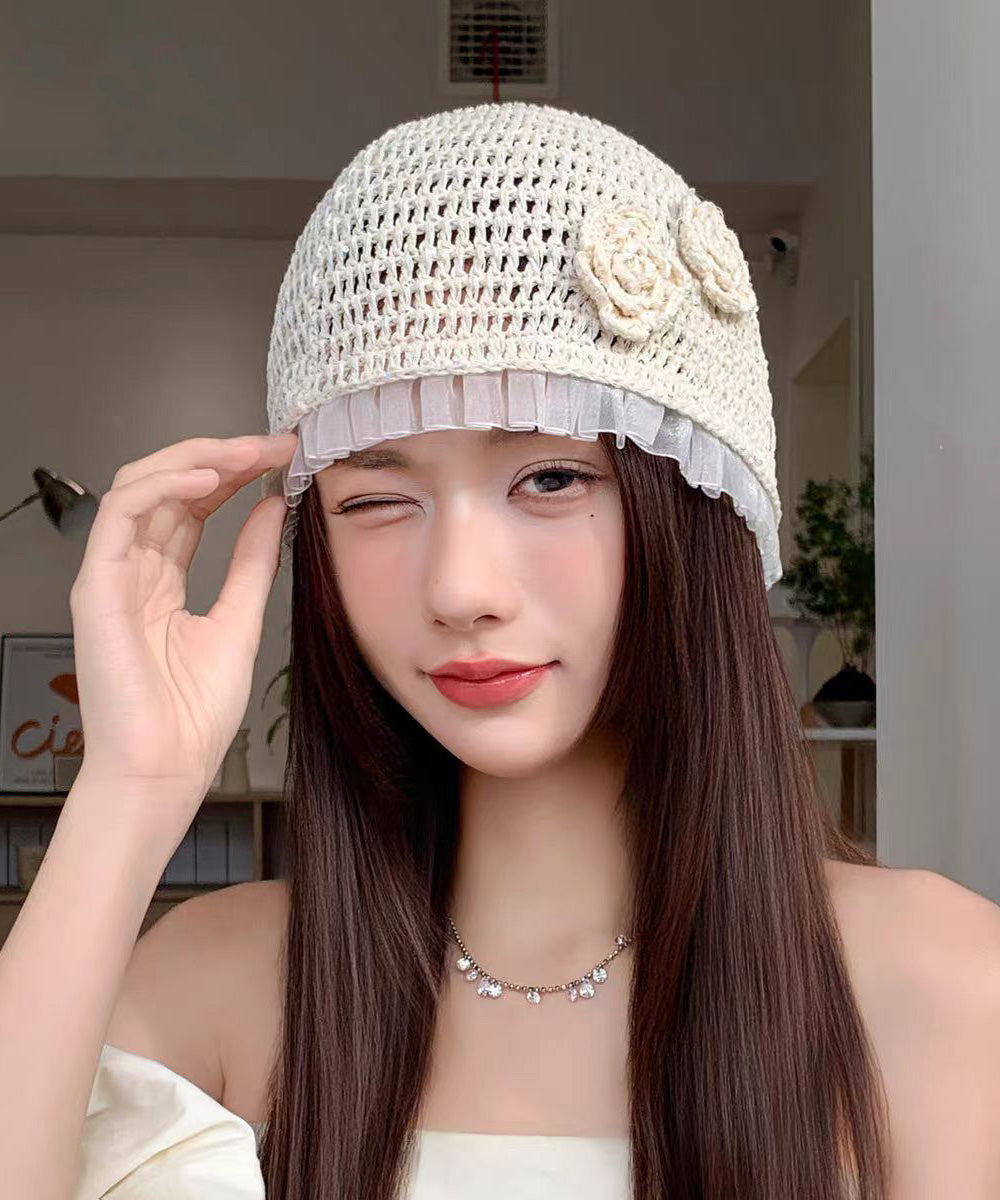 Summer Thin Flower Hollow Out Knitted Boonie Hat