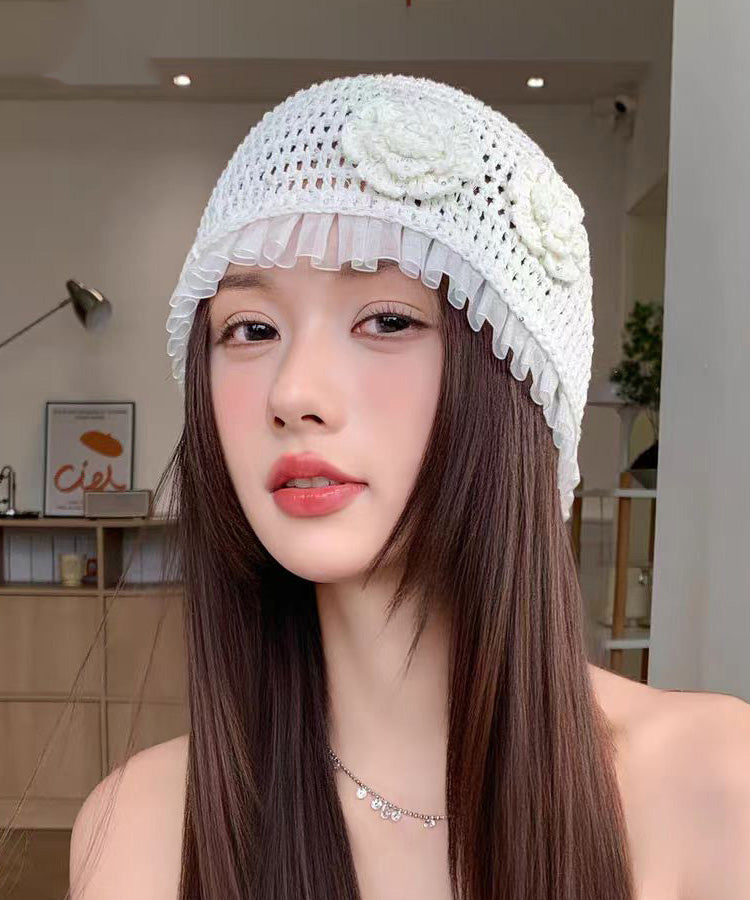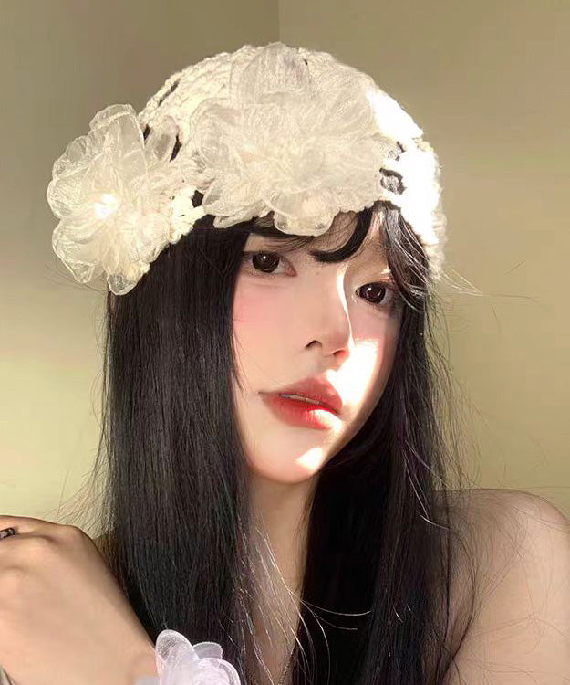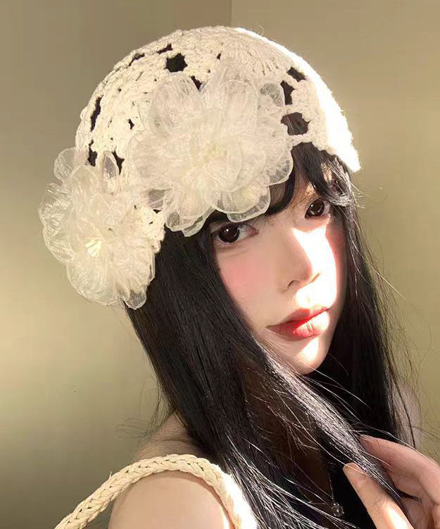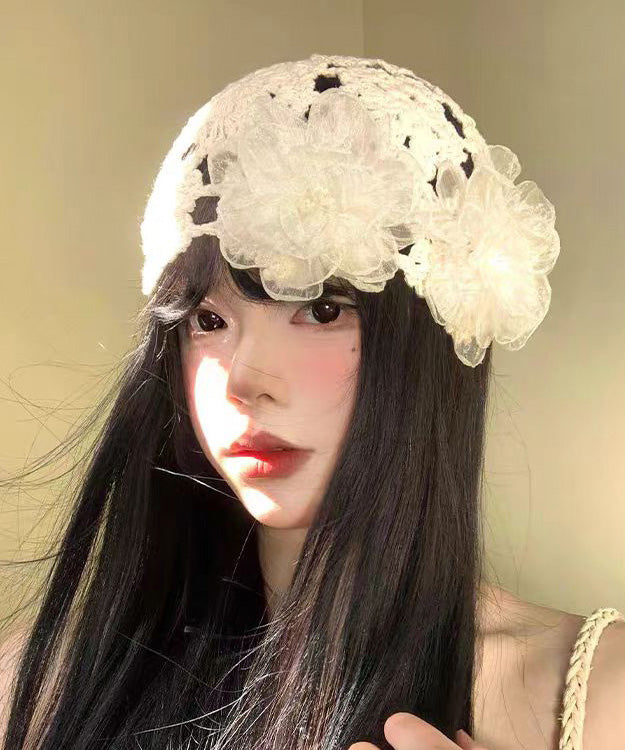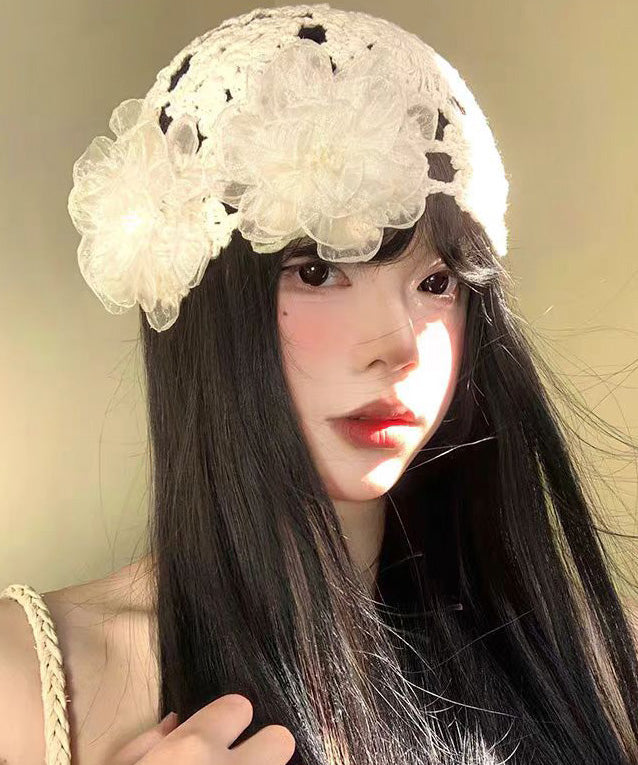 Handmade White Lace Flower Hollow Out Boonie Hat