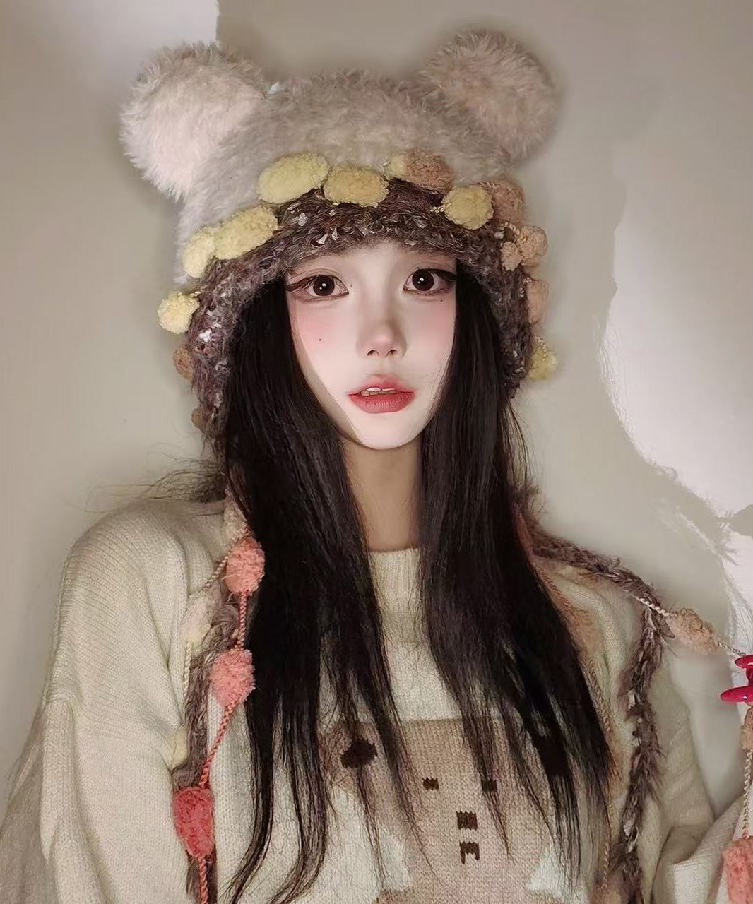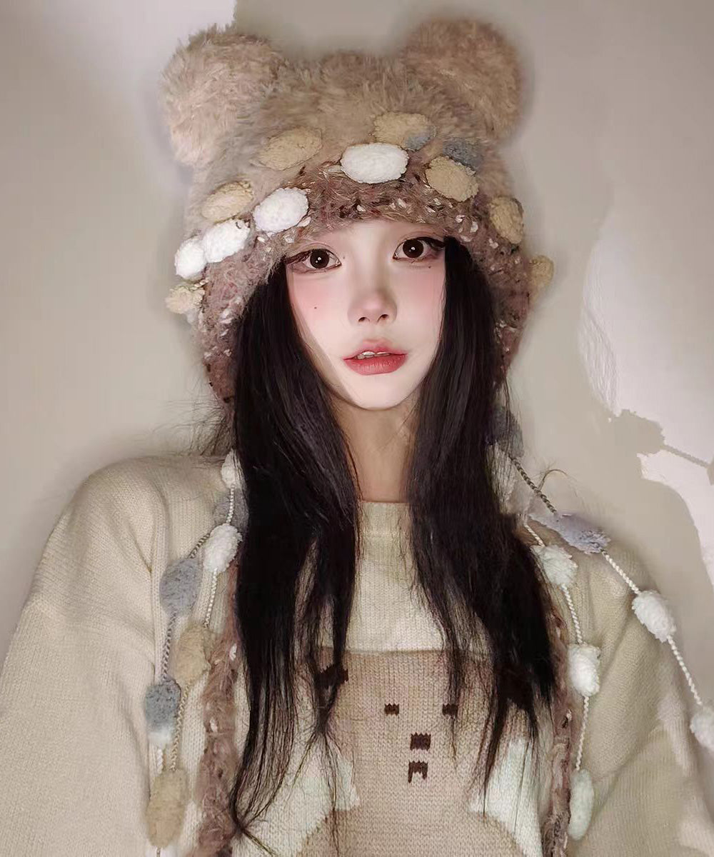 Korean Cute Versatile Pink Warm Thick Fur Knitted Hat