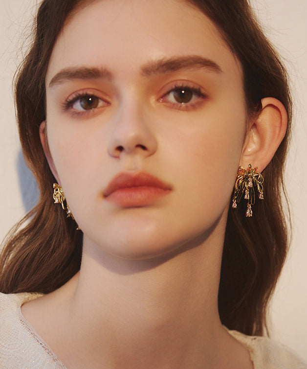 Stylish Gold Fireworks Zircon Gold Plated Stud Earrings
