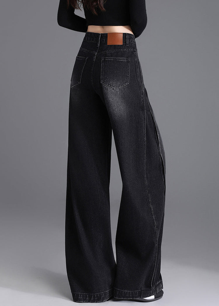 Boutique Black Pockets Denim Wide Leg Pants Spring