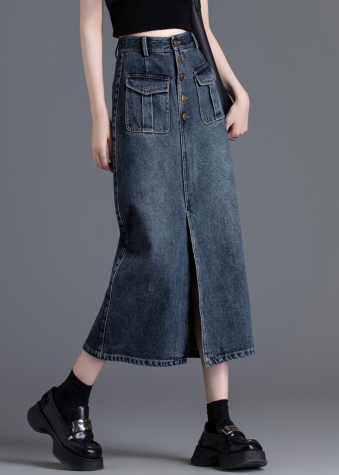 Italian Blue Side Open Silm Fit Denim A Line Skirt Spring