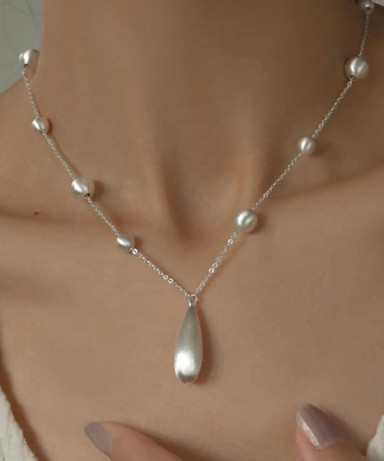 Chic Silk Copper Silver-Plated Pearl Water Droplet Pendant Necklace