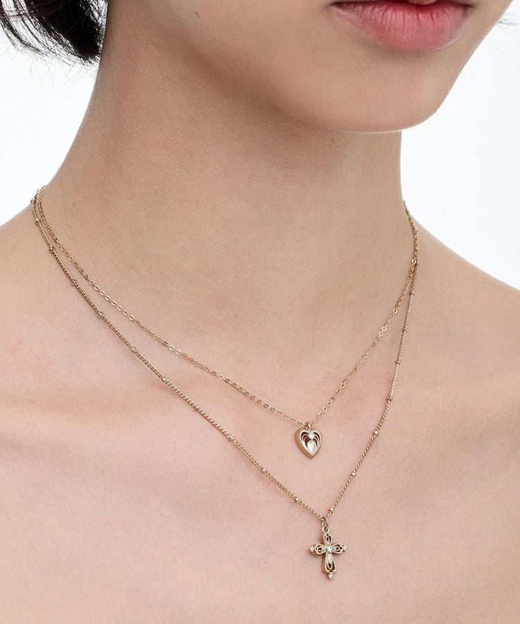 DIY Gold Copper Overgild Double Layered Cross Love Pendant Necklace