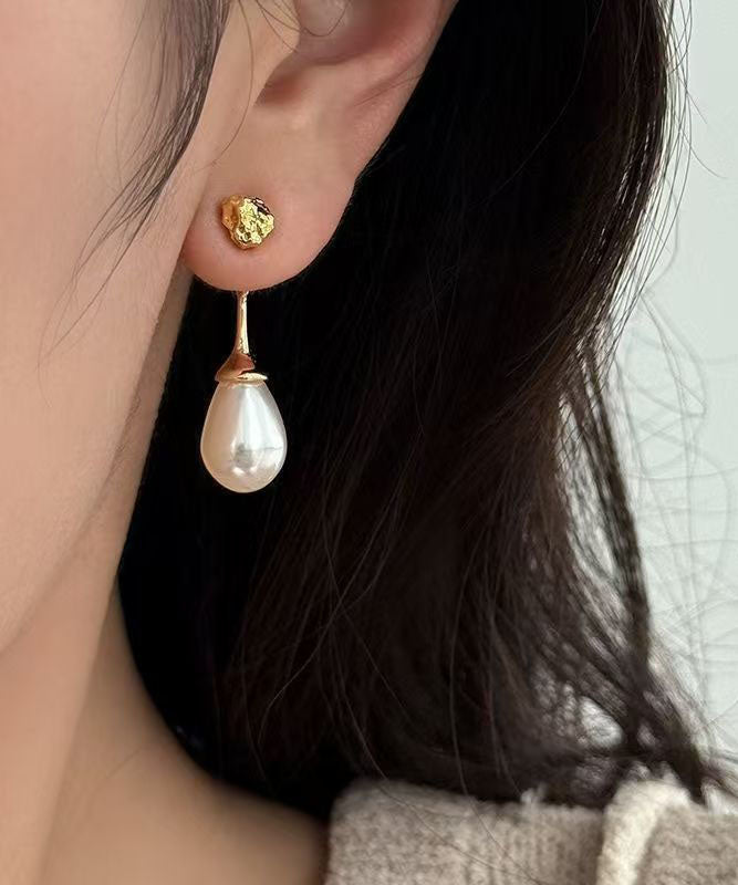 Fine Gold Sterling Silver Overgild Zircon Water Droplet Drop Earrings