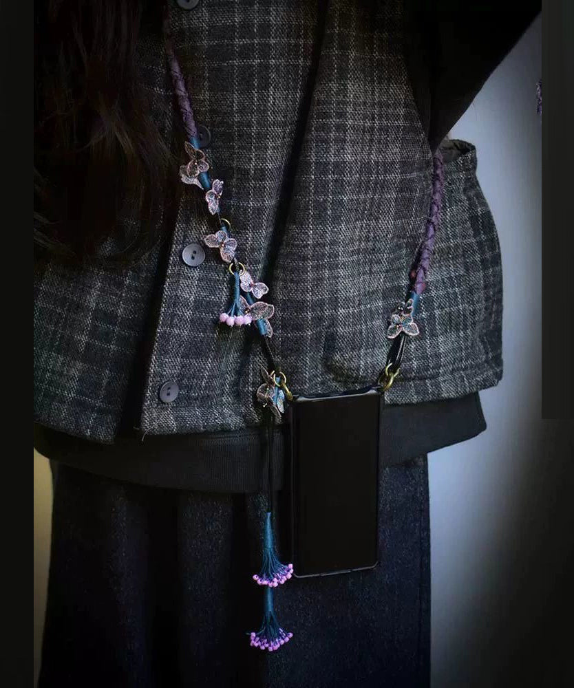 Chinese Style Purple Alloy Weave Butterfly Tassel Phone Chains