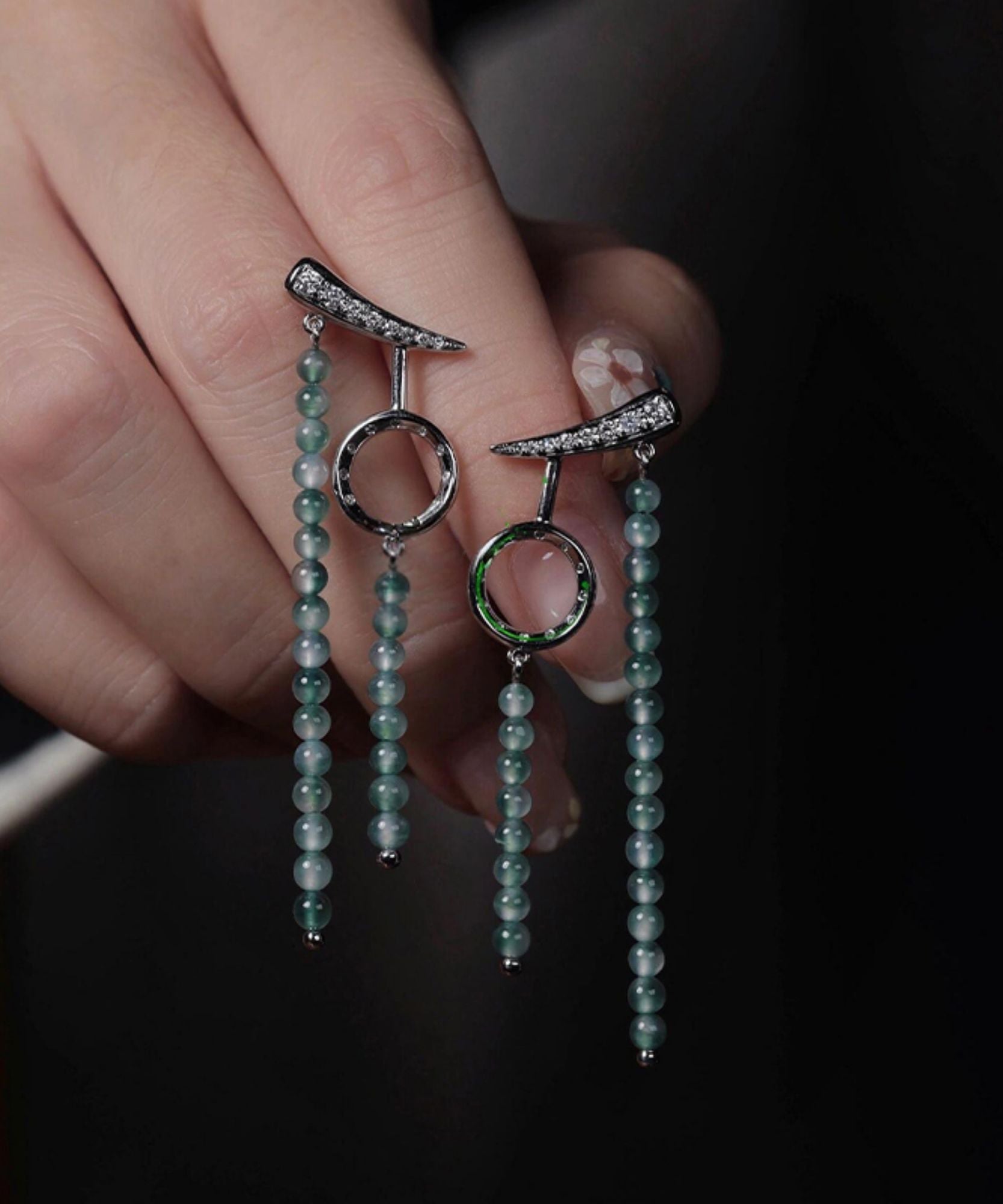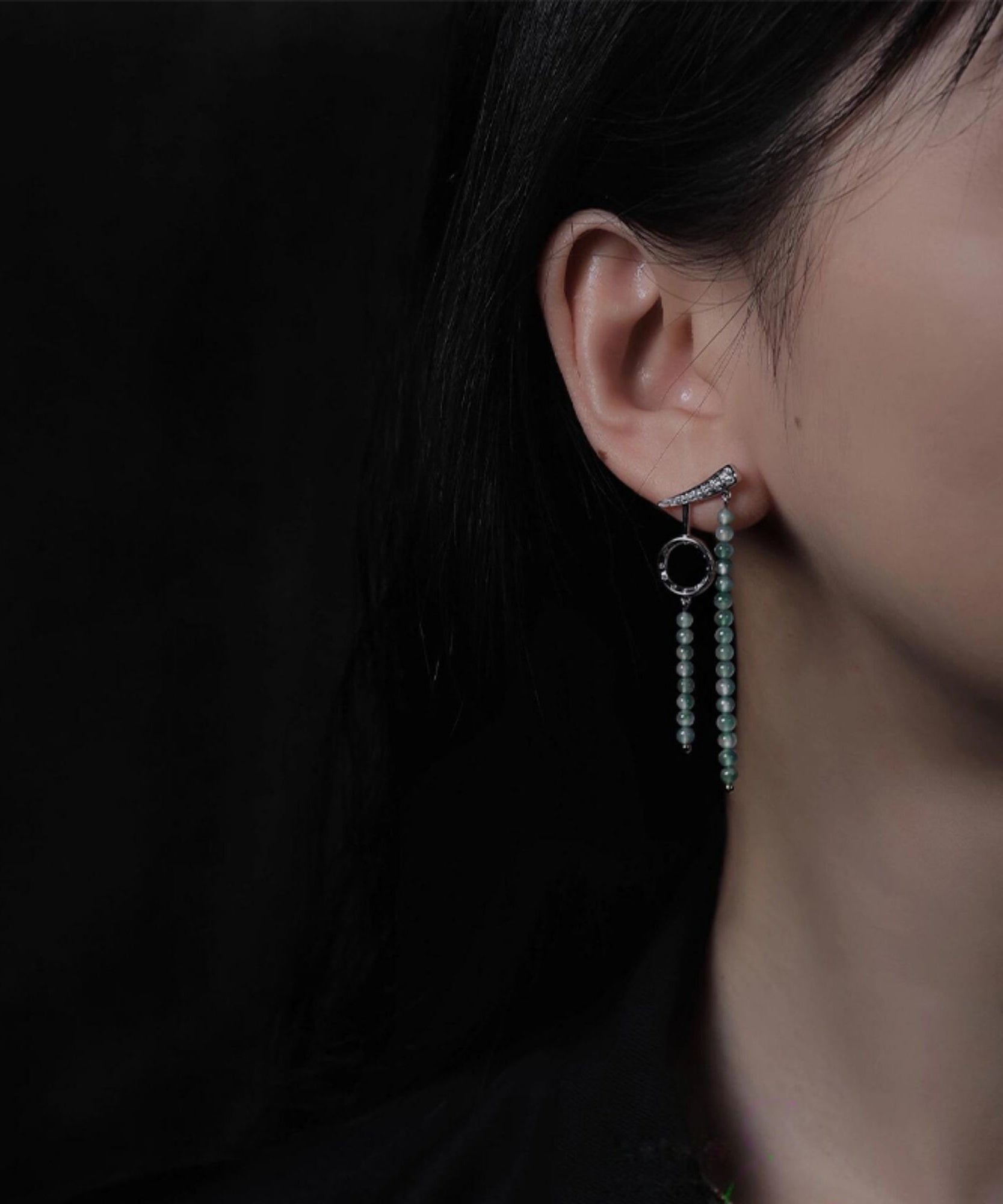 Retro Green Stainless Steel Asymmetrical Beading Drop Earrings
