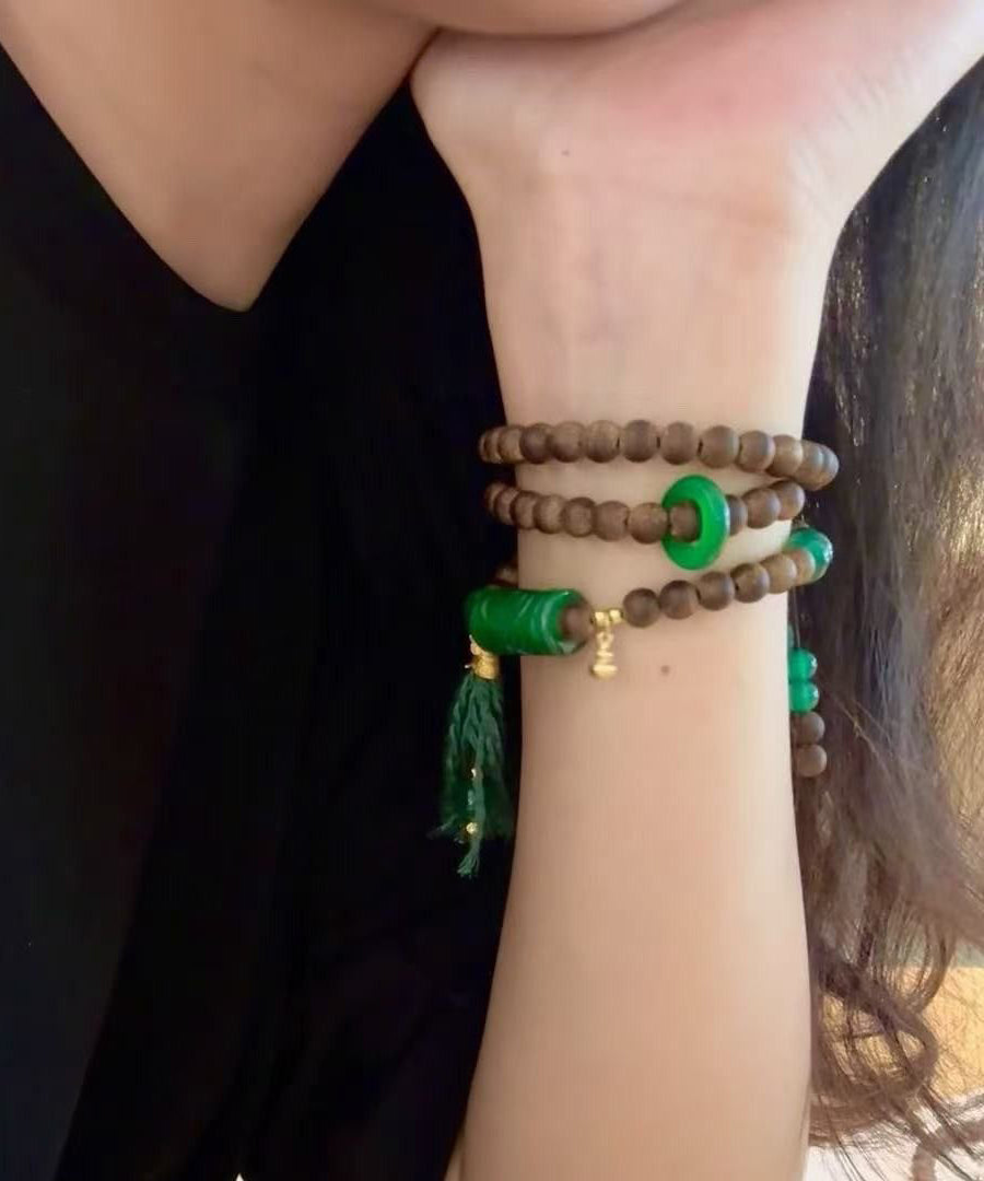 Vintage Green Beading Chalcedony Tassel Bead Necklace